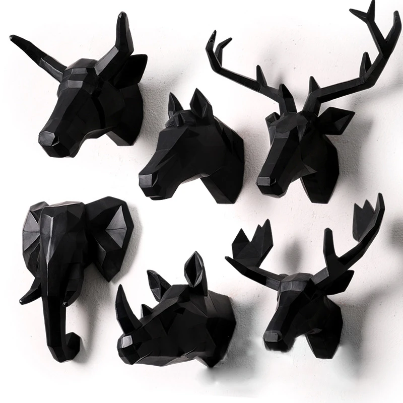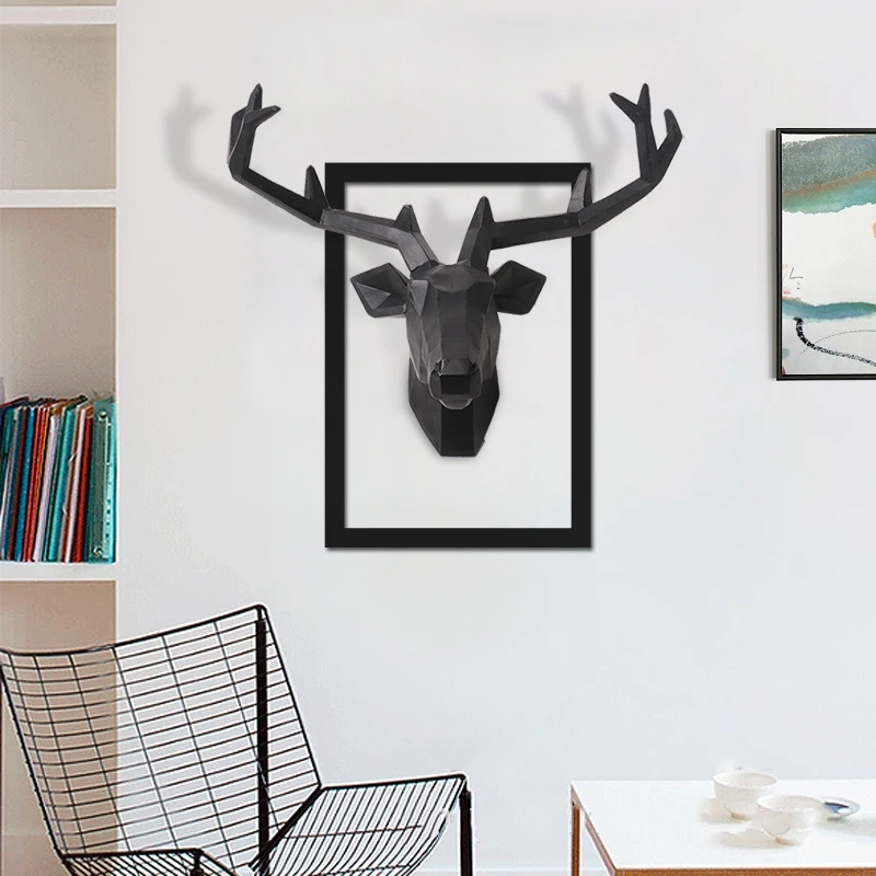 Comprar Cabeça Dos Cervos animais Wall Decor 3D Hirschkopf Arte Saloon Contratado Escritório Sala de estar Crianças Quarto Branco e Preto de Fundo Baratas Online Preço.