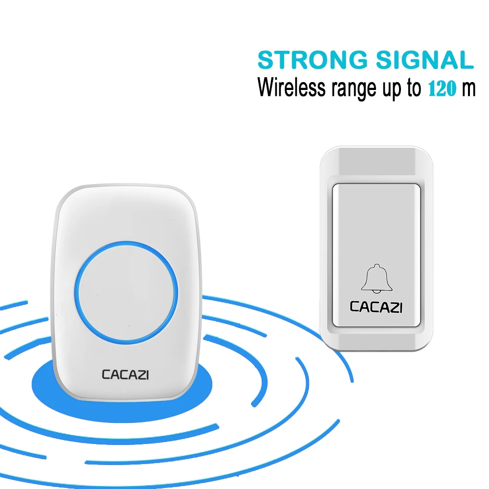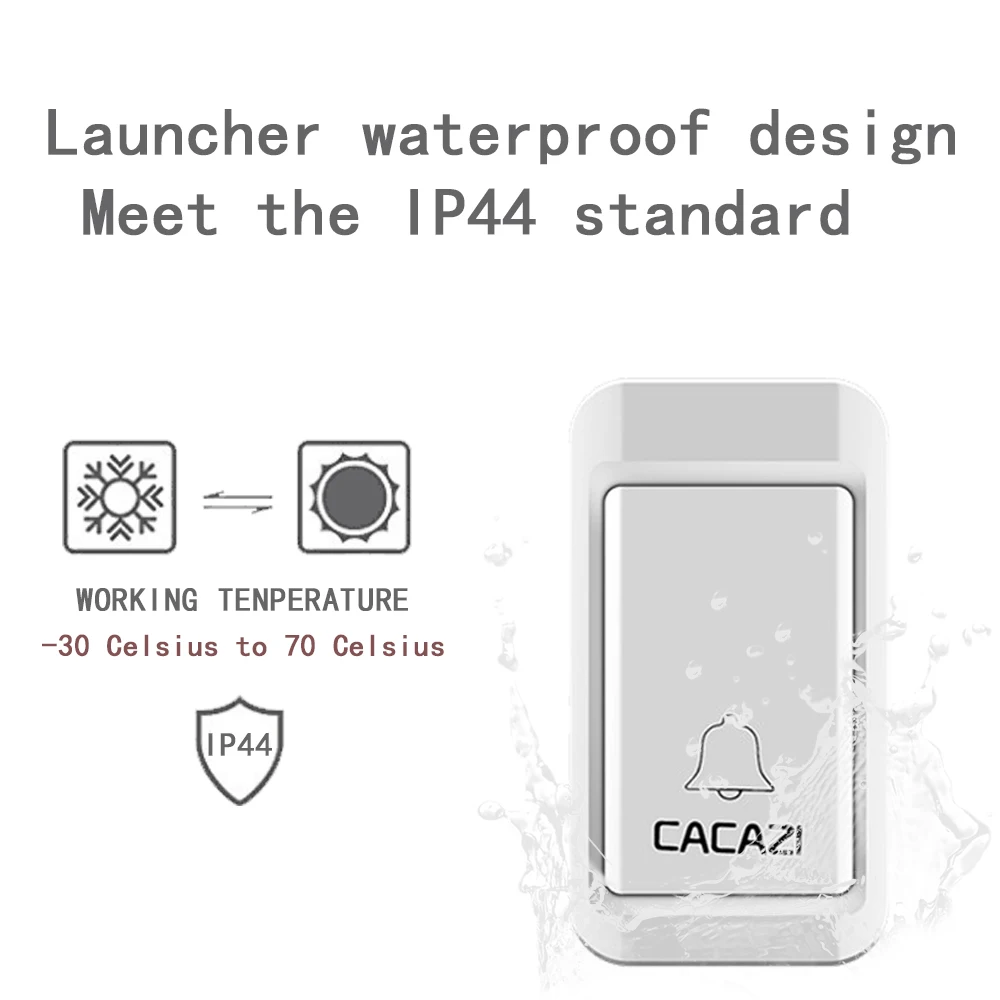 Comprar CACAZI Auto alimentado Sem Bateria Campainha Sem Fio Campainha Sem Fio Botão À Prova D Água LEVOU Para Casa a Luz EU Plug Receptor 120 m remoto Baratas Online Preço