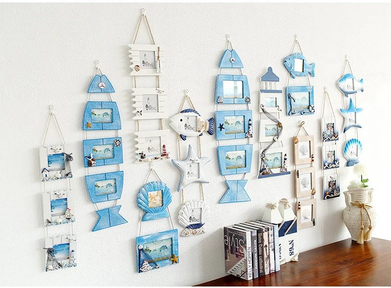 Comprar Decoração em Estilo mediterrâneo Moldura de Madeira Combinação Photo Frame Set Parede Pendurar Quadros 3,4, 5 Polegada Foto Quadro de Decoração Para Casa Baratas Online Preço.