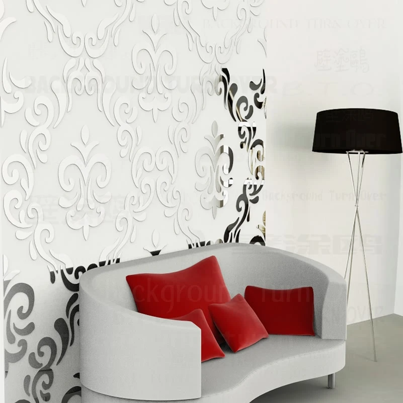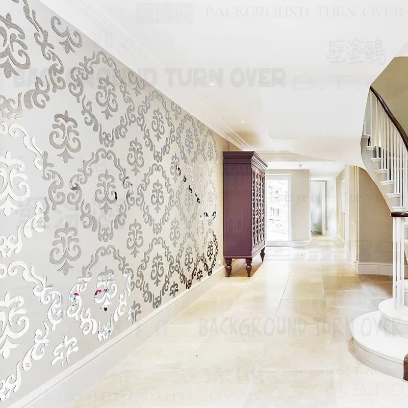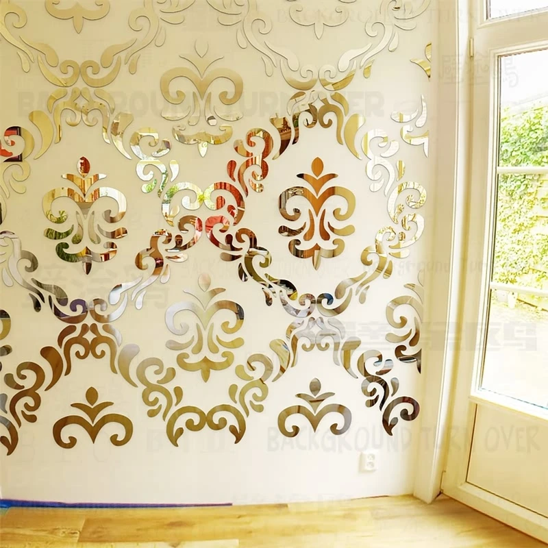 Comprar DIY criativo de estilo Europeu de luxo padrão escultura 3d espelho acrílico adesivos de parede decoração sala de estar decoração salão de cabeleireiro R218 Baratas Online Preço.