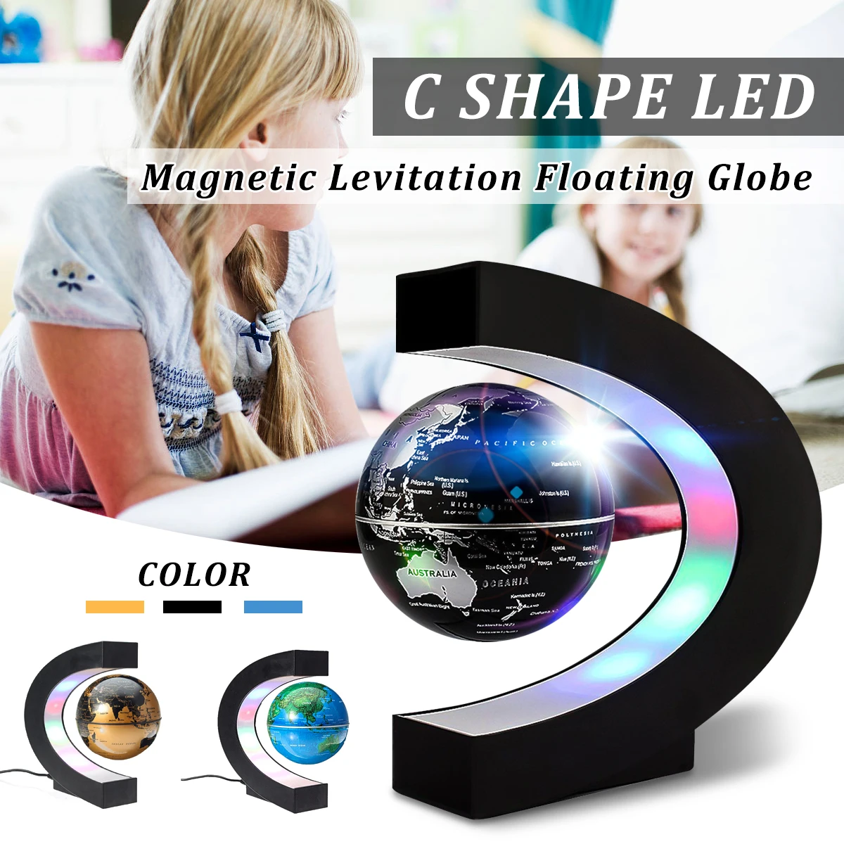 Comprar EUA Plug LED Flutuante Tellurion Forma C Levitação Magnética Flutuante Globo Mapa Do Mundo Com Luz Casa Decoração da Mesa de Escritório Baratas Online Preço