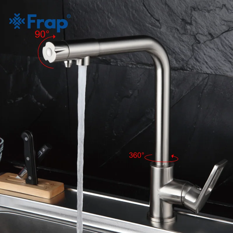 Comprar Frap Níquel Escovado Torneira Da Cozinha Projeto do Ângulo Direito de 360 Graus de Rotação com Características de Purificação de Água Único Punho F4372 5 Baratas Online Preço