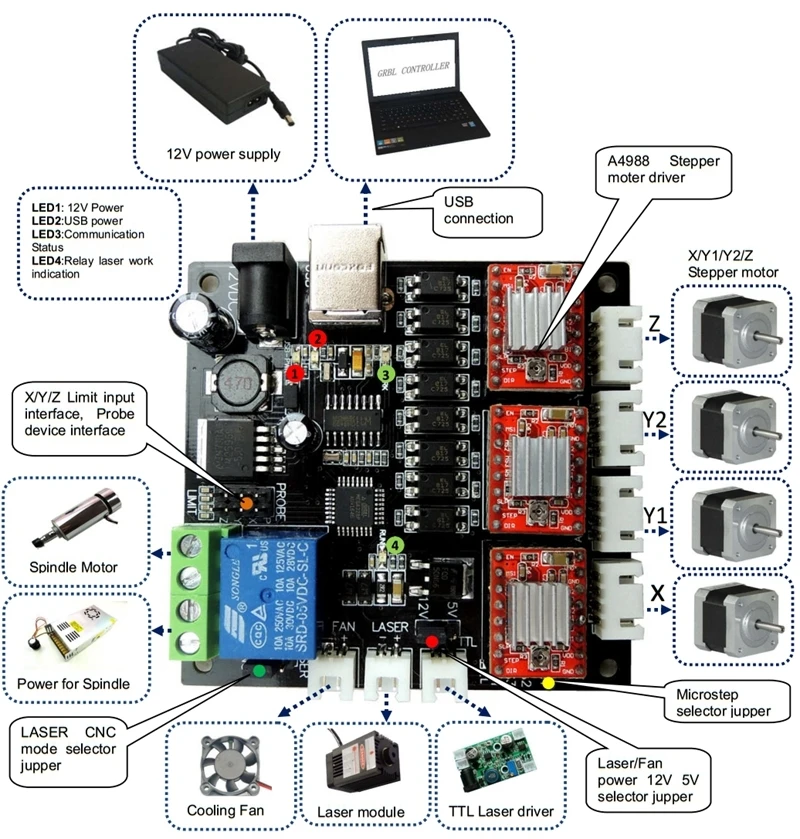 Comprar GRBL 3 Axis Stepper Motor Driver controlador de Laser CNC placa USB para GRBL Controlador placa CNC Mini máquina de gravura do Laser Baratas Online Preço.