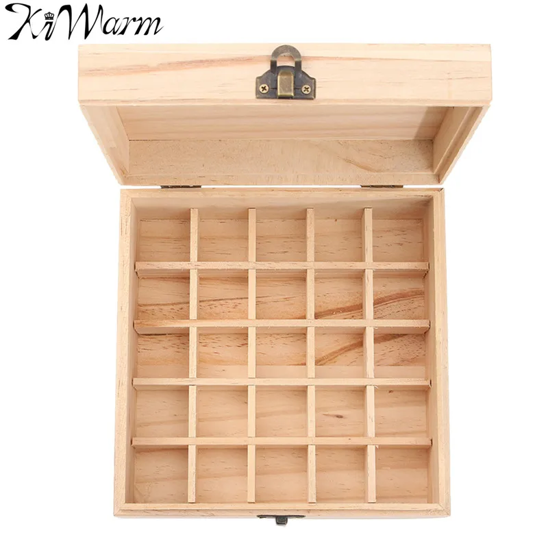 . Melhor Kiwarm Vintage 25 Slots Caso Recipiente Organizador Caixa De Armazenamento De Madeira Artesanato Aromaterapia Óleo Essencial para Casa Enfeites de Mesa Barato Online Preço.