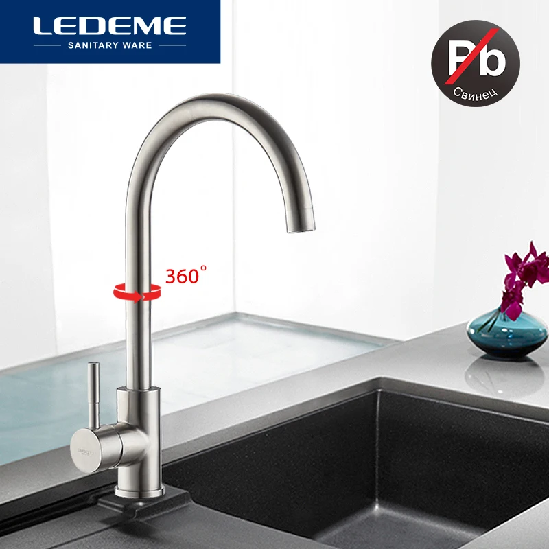 . Melhor LEDEME Clássico Escovado Processo de Aço Inoxidável Torneira Da Cozinha Giratória Torneira de Aço Inoxidável Torneira Da Bacia de Rotação de 360 Graus Barato Online Preço.