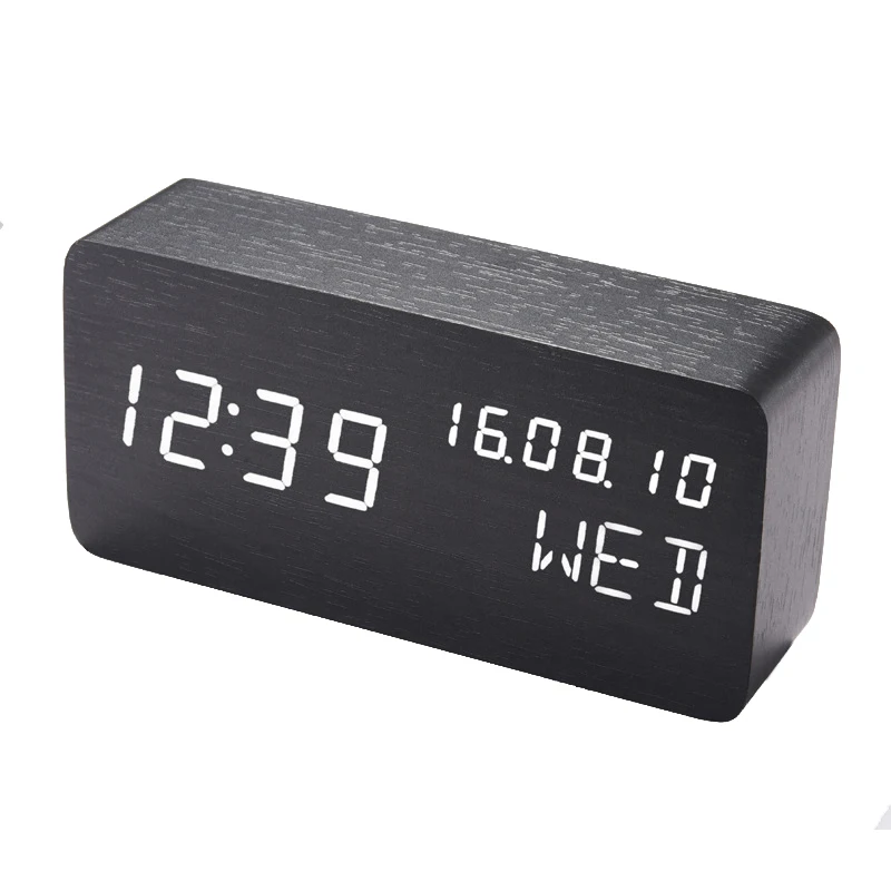Comprar Madeira LED Alarm Clock Display Data e Hora + + Celsius Fahrenheit Temperatura Função de Controle de Som UMA Mesa Relógios de Mesa Baratas Online Preço.