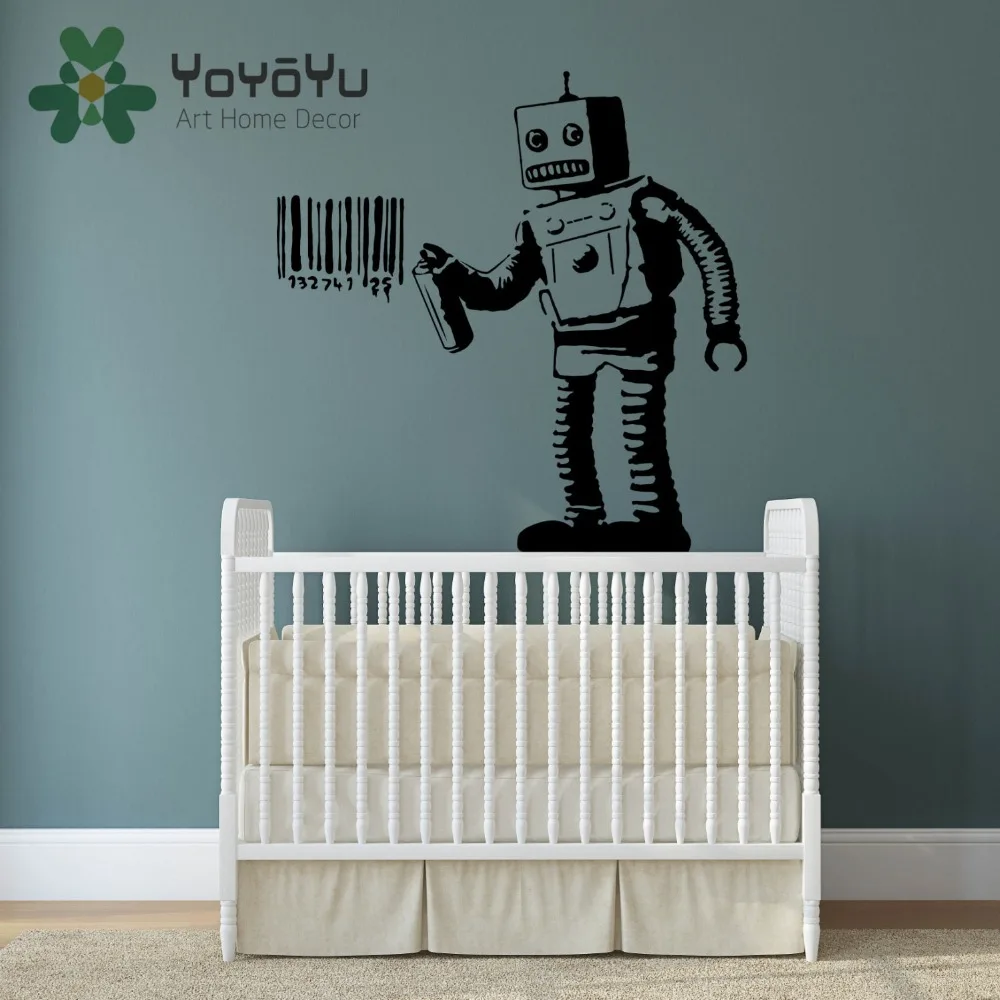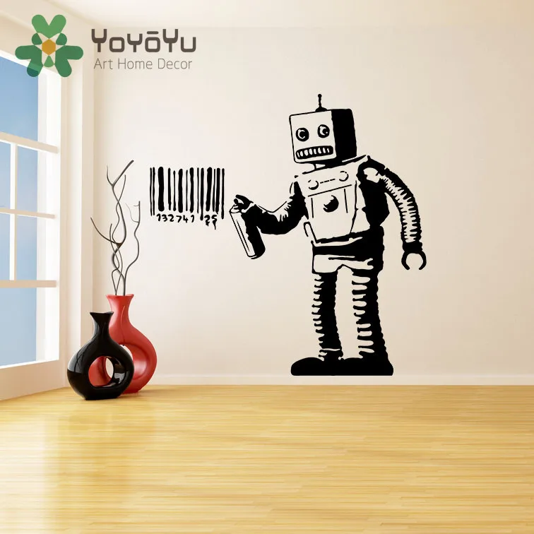 Comprar Morden Banksy Decalque Da Parede Do Vinil Robô Rua Graffiti Graffiti Pintura Máquina de Código De Barras Etiqueta Robô Engraçado Art Poster NY 61 Baratas Online Preço.