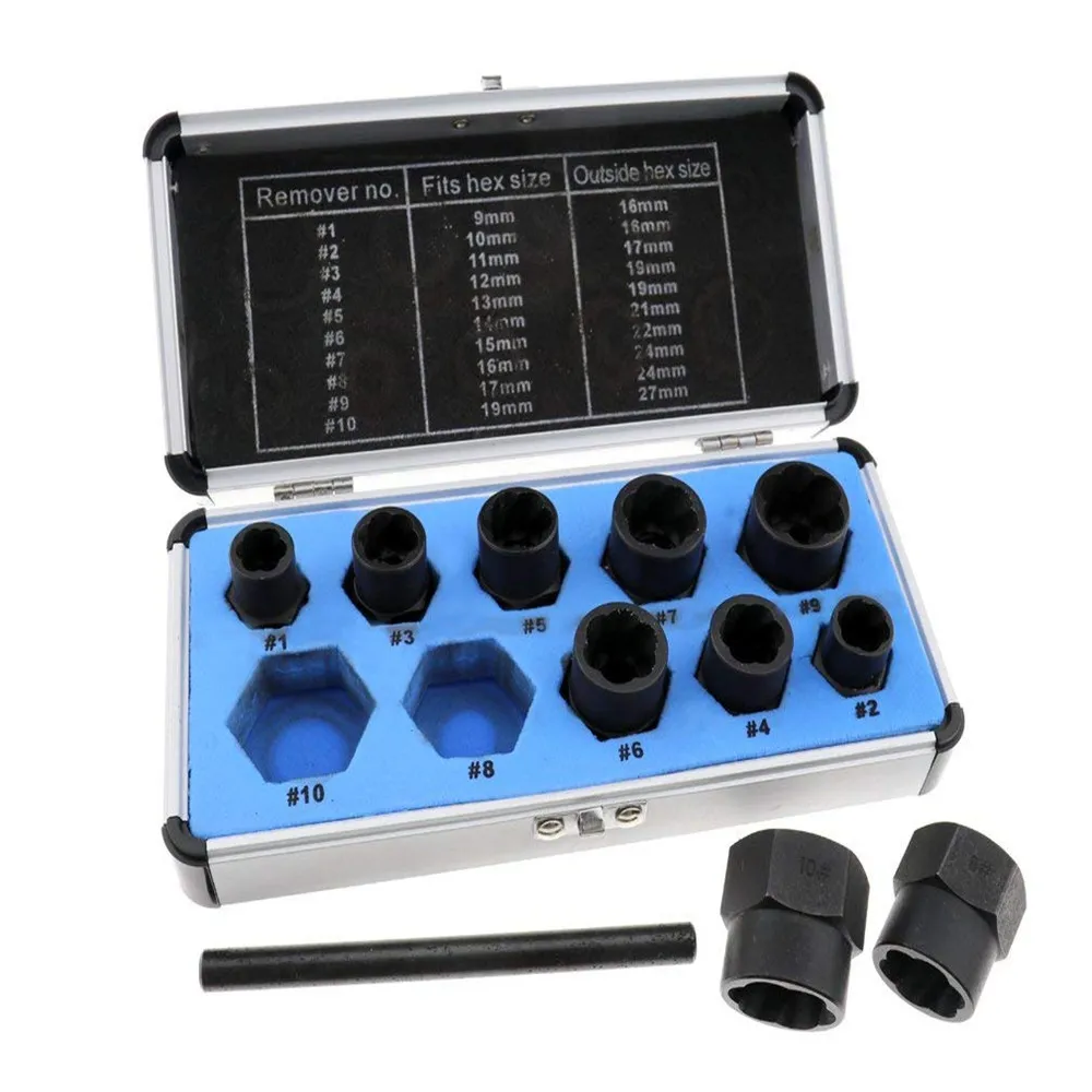 Comprar MTGATHER 10 pcs Danificado Parafuso Porca Parafuso Removedor Extrator Ferramenta de Tomada de Conjunto de Remoção de Remoção Da Porca Preto 9 19mm Baratas Online Preço.