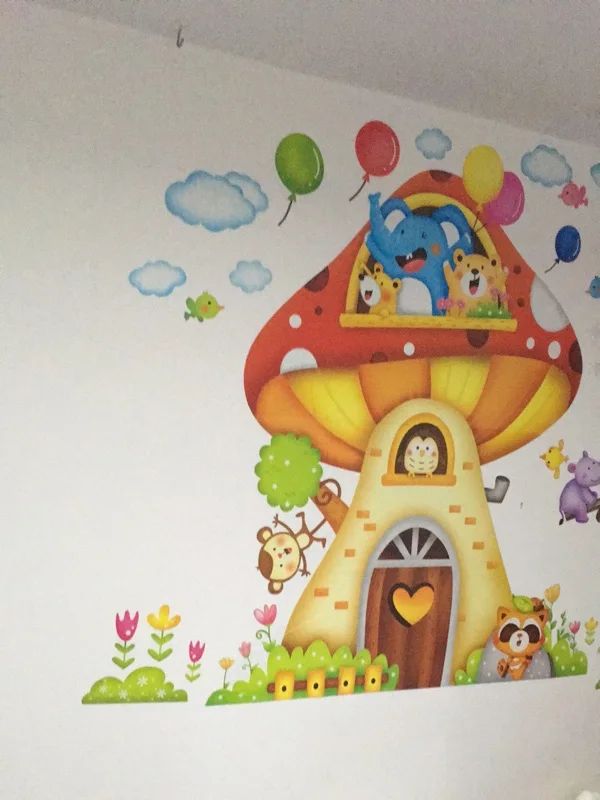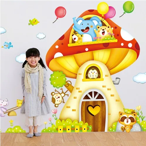 Comprar Muurstickers cogumelo Grande casa dos desenhos animados Adesivo de Parede para crianças quarto Removível Decalques Da Parede Da arte casa decoração da parede decoração da parede Baratas Online Preço.