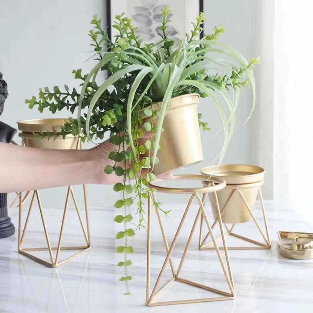 . Melhor Ouro Titular Stand Inovador Casa Modelo Casa de Ferro Flor de Metal Plantador Da Flor Sala de estar Mesa de Presente Agradável 3 Tamanhos Barato Online Preço.