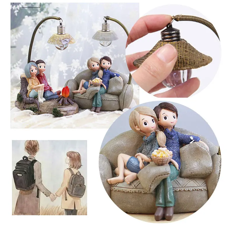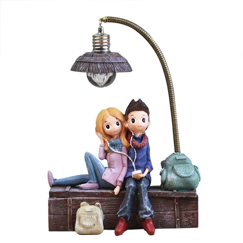 Comprar Par romântico Character Estatueta Ofício da Resina Casa Decoração Luz da Noite Europa Quarto Estudo Nightlight Ornamento Do Presente Do Estudante Baratas Online Preço
