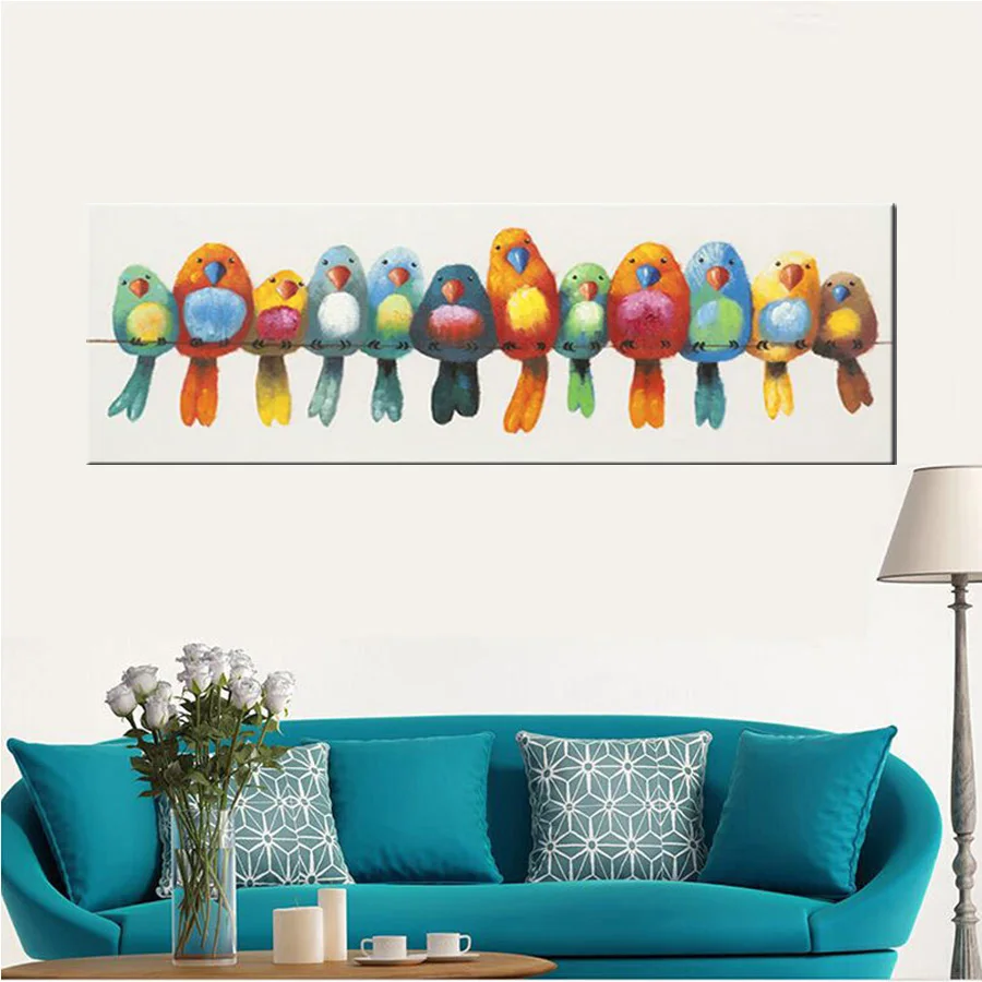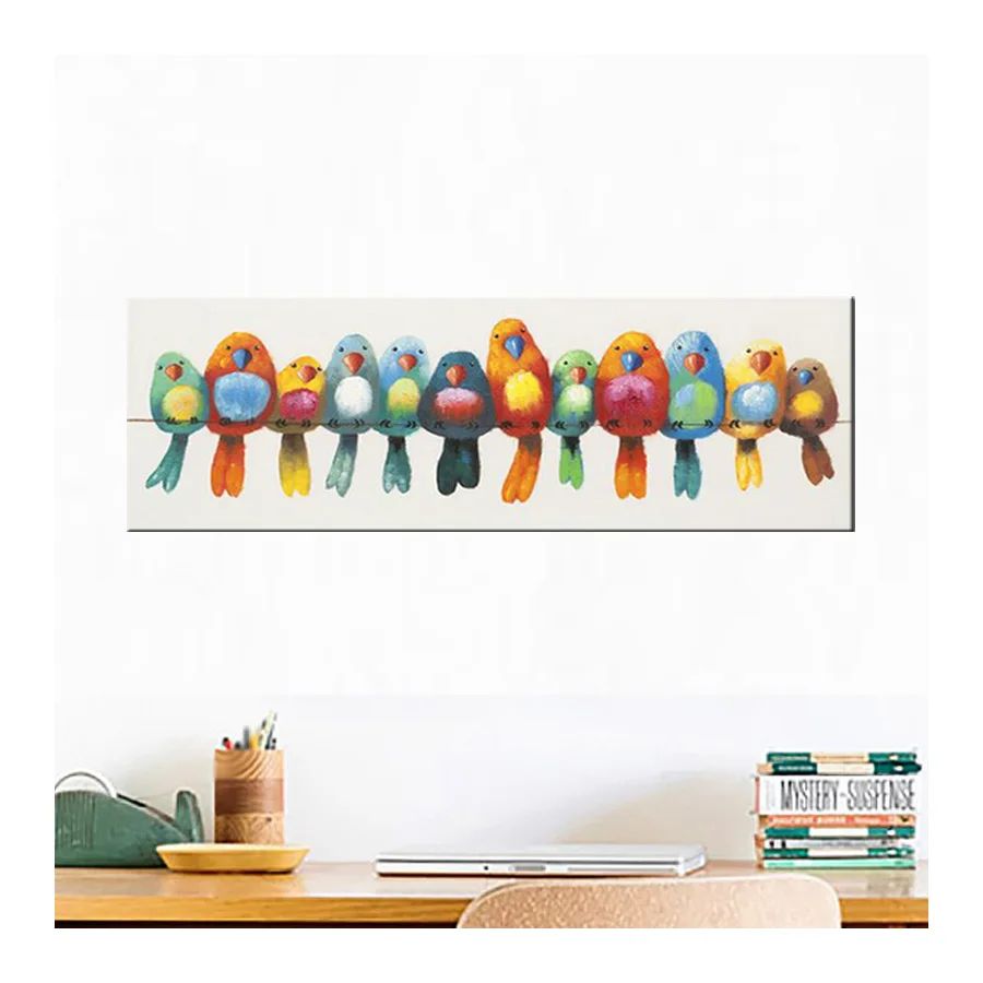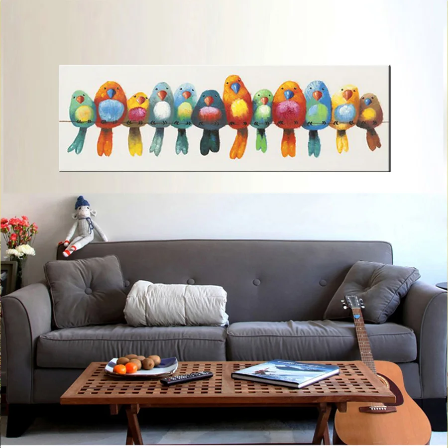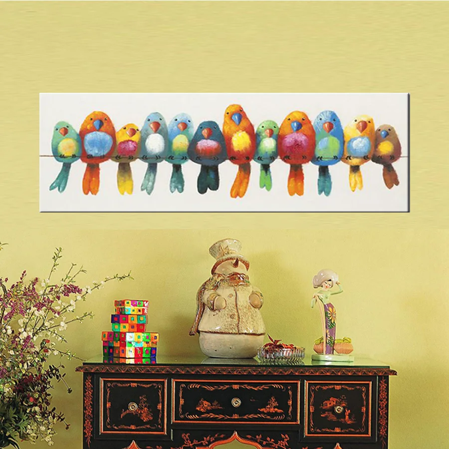 Comprar Pintura a óleo da lona pintado à mão colorido dos pássaros da arte da lona bonito linda imagem do pássaro pintura a óleo do retrato da parede das crianças engraçadas Baratas Online Preço