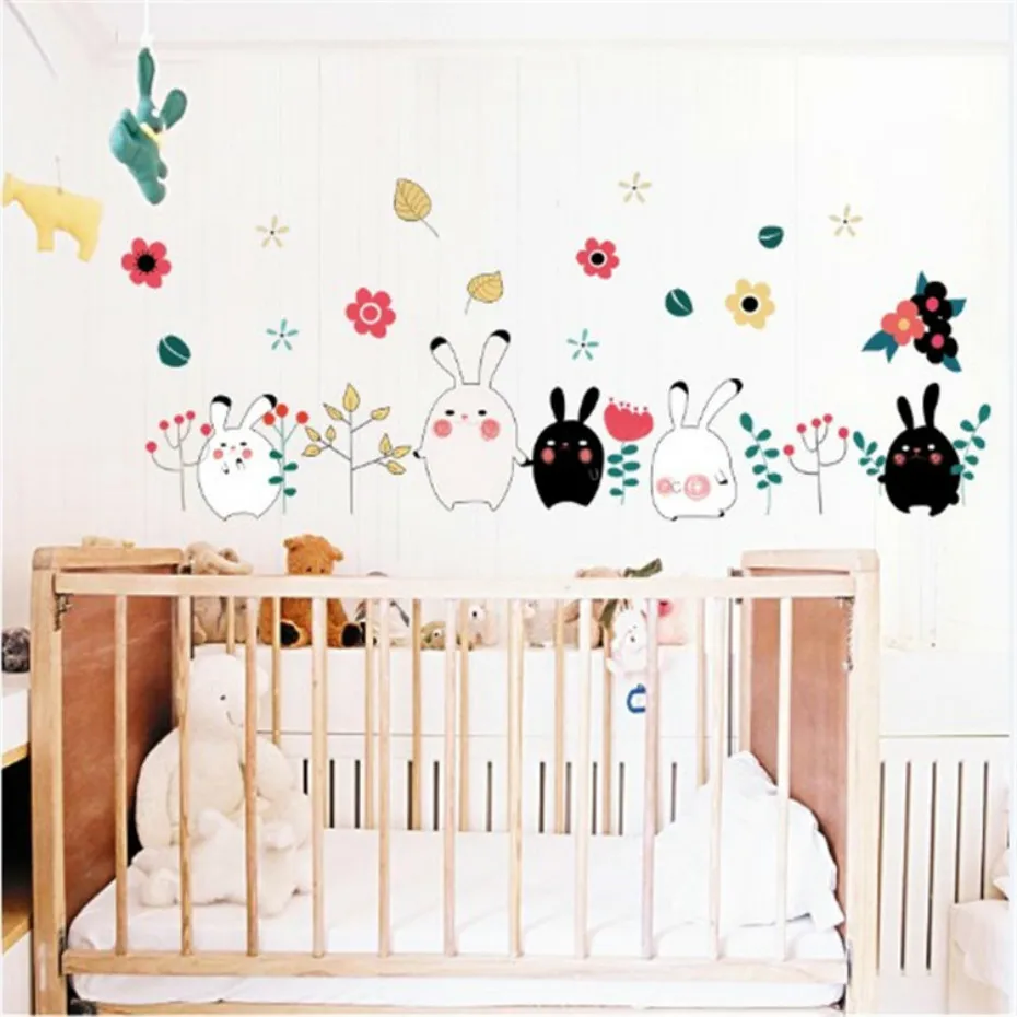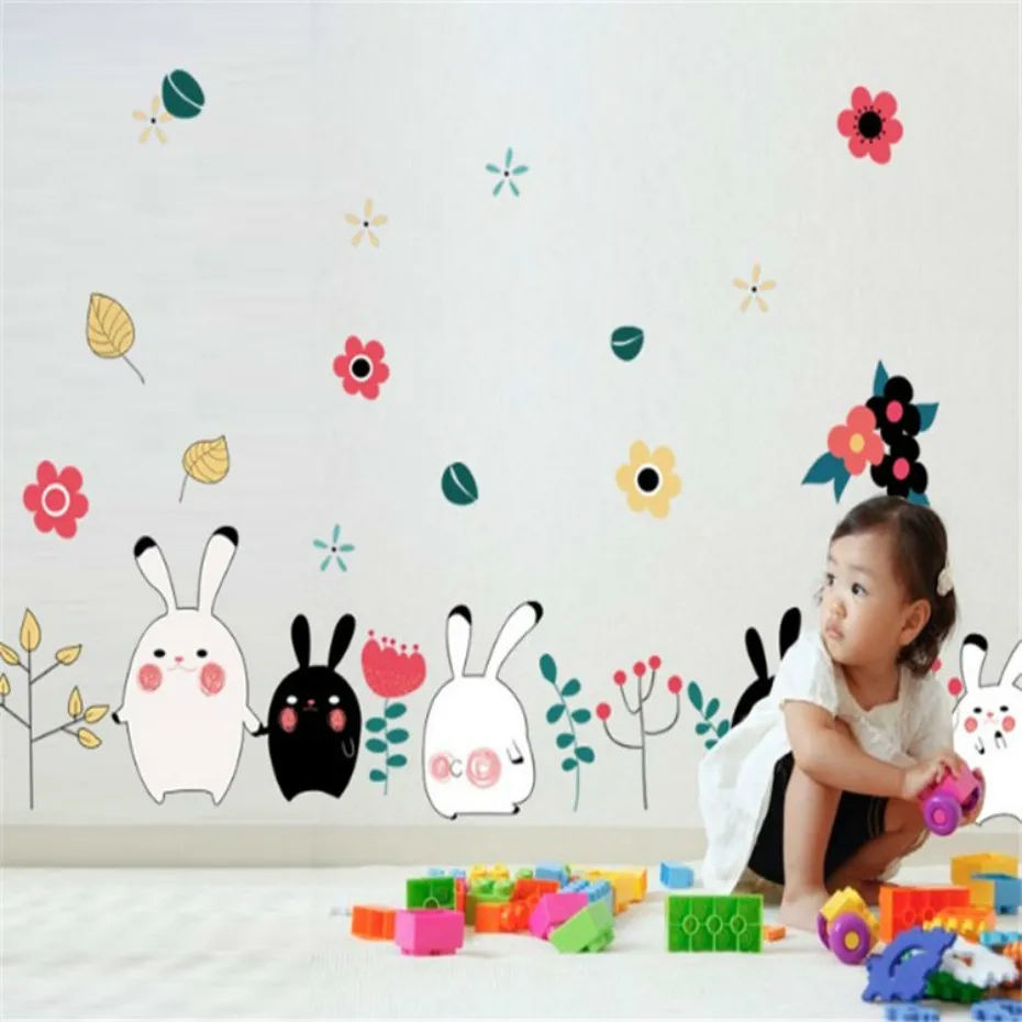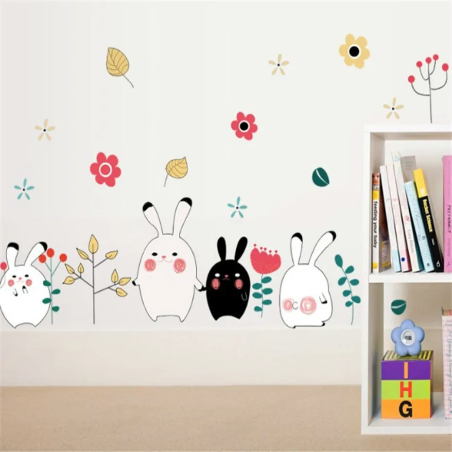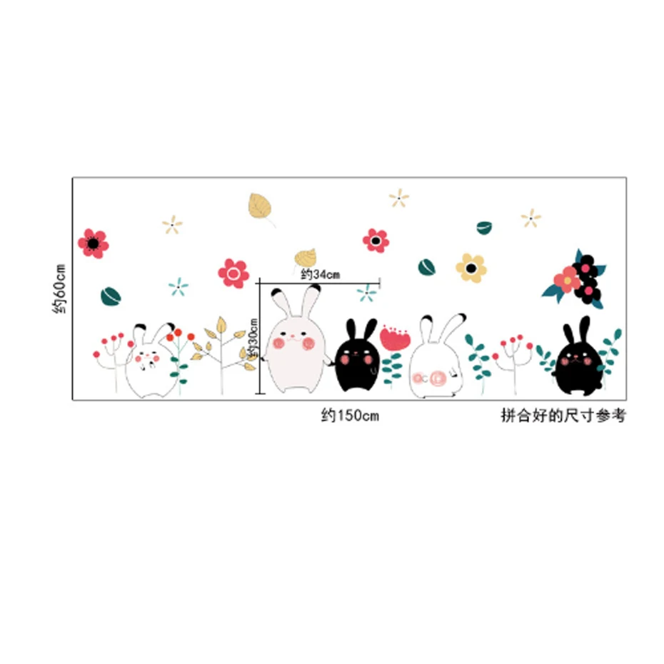 Comprar Teste Padrão de Flor de Coelho bonito Dos Desenhos Animados Japão Comic Figura Gato Dos Desenhos Animados Adesivos de Parede Crianças Decalques Da Arte Da Parede Da Casa Decoração de Casa Baratas Online Preço