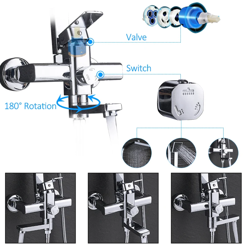 Comprar Torneiras Chuveiro Do Banheiro Set 8 Quyanre \"Cabeça de Chuveiro Rainfall Tub Bico 3 Forma Torneira Da Pia Único Punho Mixer torneira Do Chuveiro Do Banho Baratas Online Preço.