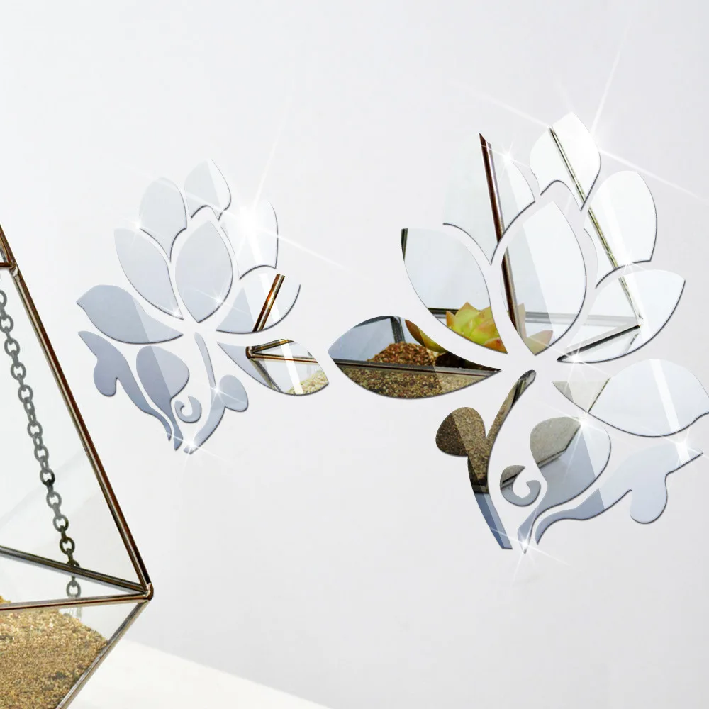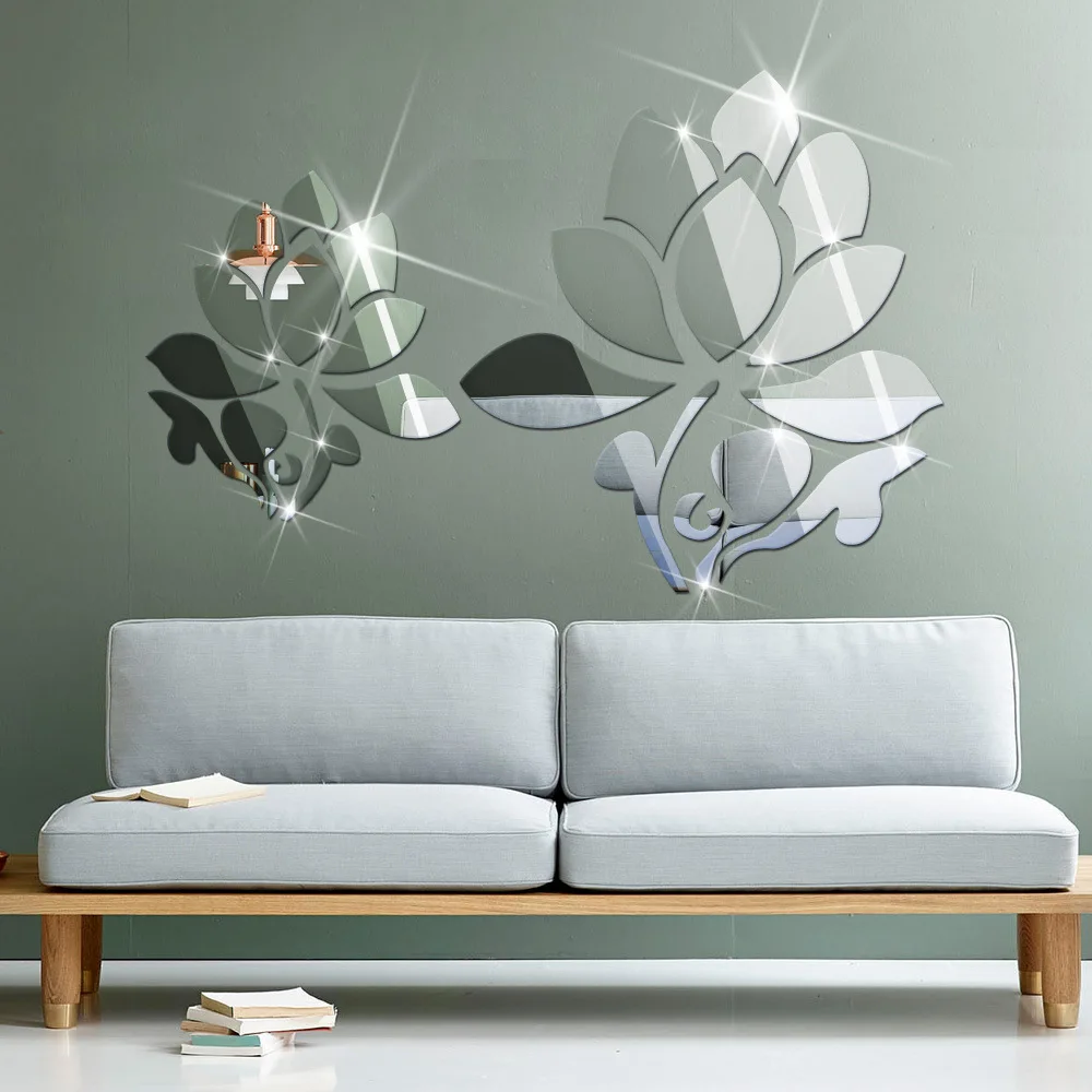 Comprar 3D Espelho Adesivos De Parede Clássico Moderno Flores de Lótus Projeto decorativo Espelho Adesivo de Parede Para Sala de estar Em Casa 80x50 cm 32x20in Baratas Online Preço.
