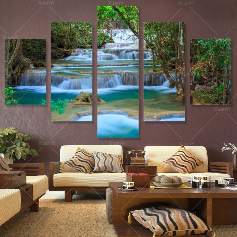 Comprar 5 Painel Modern Prints River Forest Pintura Pictures Pinturas Da Lona Arte Da Paisagem Para Sala Unframed Cuadros PR1045 Baratas Online Preço.