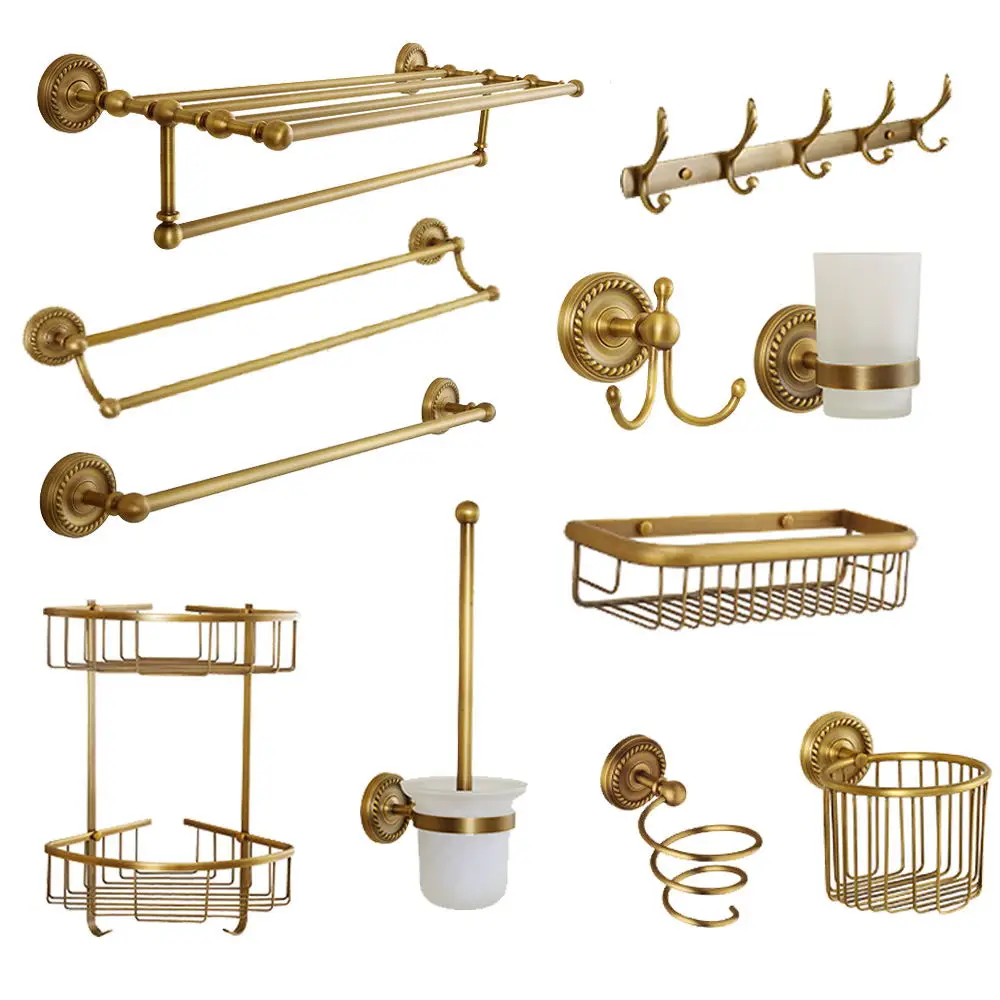 Comprar Antique Esculpida Conjuntos de Hardware Banheiro Acessórios Do Banheiro Conjunto de Banheiro Escovado Latão Europeia Produtos (prateleira Cremalheira de toalha) Baratas Online Preço.
