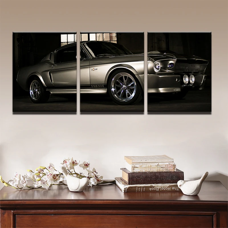 Comprar Da Parede Da lona Da Arte Da Lona Pintura de Paisagem Parede Pictures 3 Painel Modular Cool Car Paisagem Para Sala HD Impressão PENGDA Baratas Online Preço