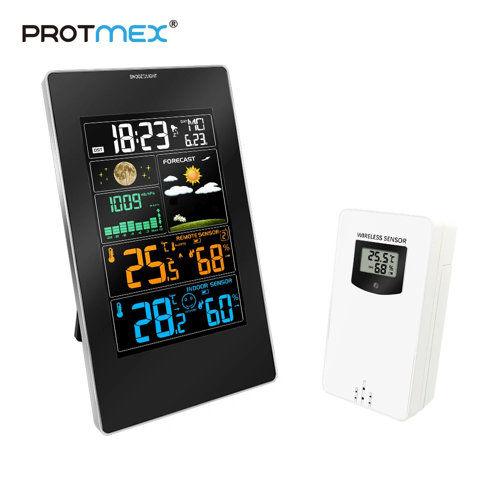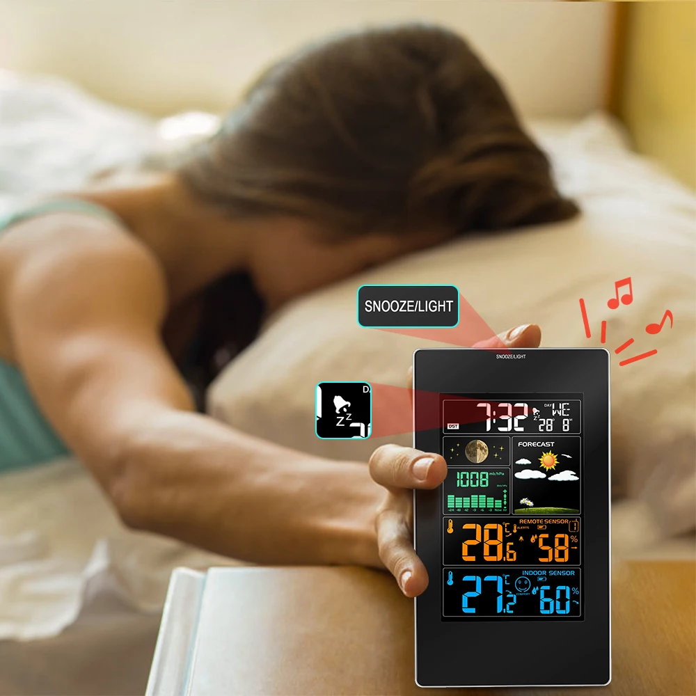 . Melhor Despertador Colorido Display LCD Temperatura Umidade Estação Meteorológica Sem Fio Barómetro Previsão do tempo RCC Clock in outdoor Barato Online Preço.