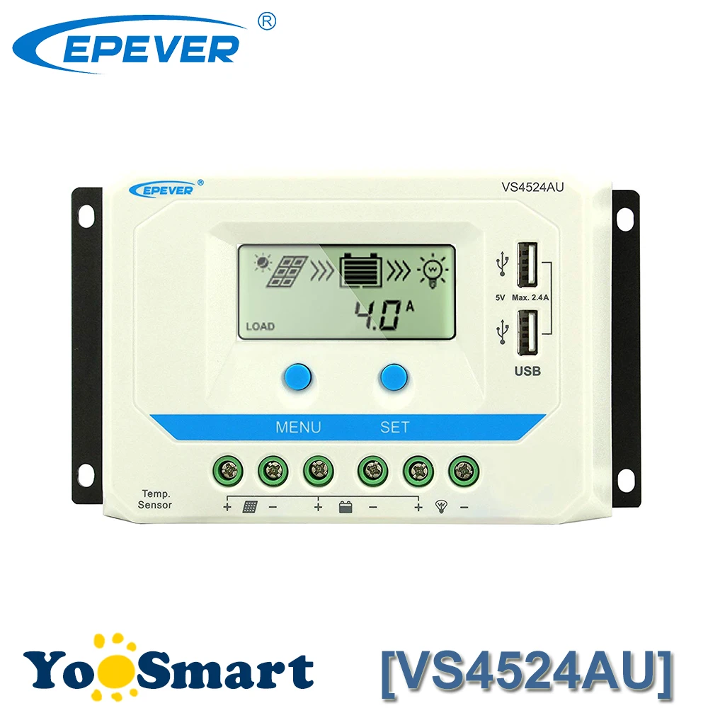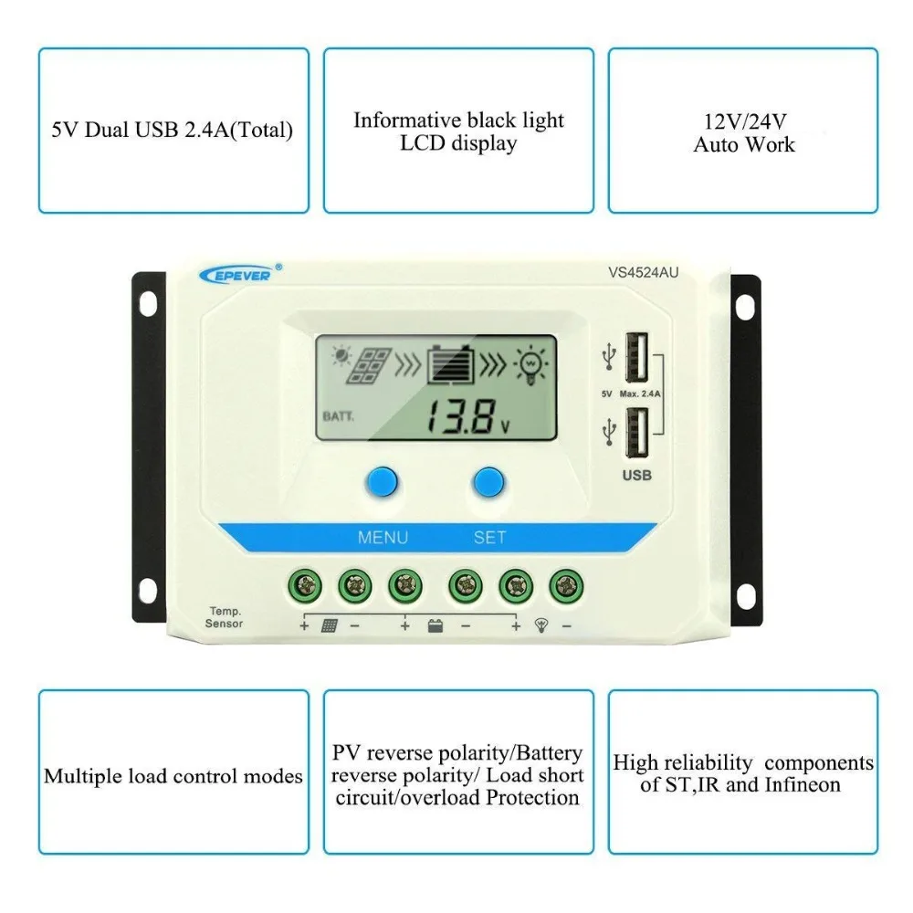 Comprar EPever VS4524AU 45A 12 v 24 v DC Auto PWM Controlador de Carga Solar com Informativo Black Light display LCD Duplo EPsolar 5 v USB Baratas Online Preço.