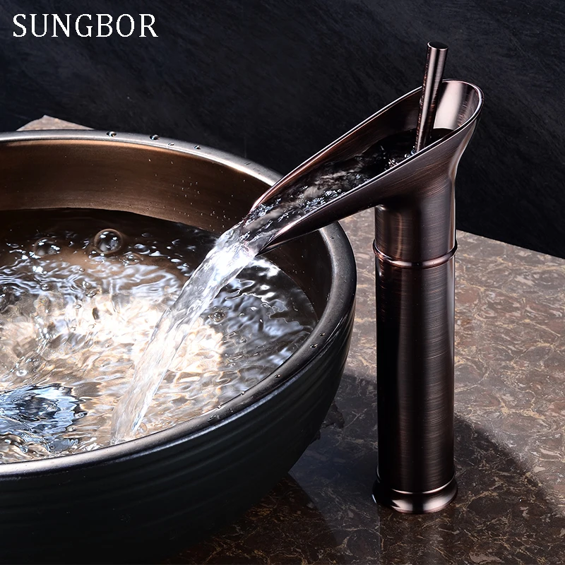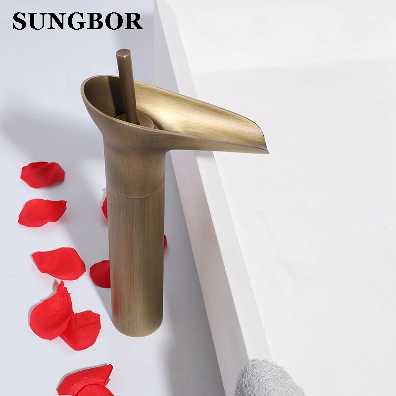 Comprar Estilo Copo de vinho Única Alavanca cachoeira Bacia Banheiro Torneira de Bronze Antigo Quente e Fria Pia do banheiro Torneiras Misturadoras AL 7129F Baratas Online Preço.