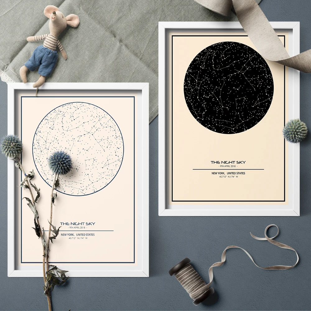 Comprar Estilo Nórdico Vintage Personalizado Céu Noturno Estrela Art Mapa Canva Impressões pintura de Parede Retrato Da Arte Para A Decoração Home Mapa Personalizado Frameless Baratas Online Preço.