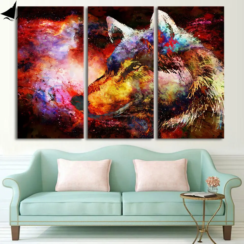 Comprar HD Impresso 3 Peça Da Arte Da Lona Abstrata Pintura do Lobo Cor Psicodélica CU 1821C Retratos Da Parede para Sala de estar Frete Grátis Baratas Online Preço.