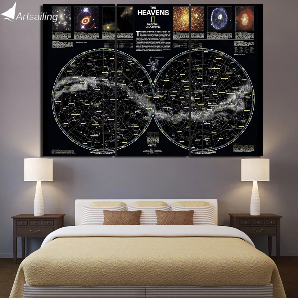 Comprar HD Impresso 3 Peça Da Arte Da Lona Mapa Estrelas Retratos Da Parede para Sala de estar Moderna Frete Grátis Pintura Da Lona NY 7422C Baratas Online Preço.