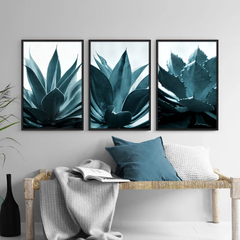 Comprar Plantas tropicais Pintura Azul Verde Decoração de Casa Moderna 3 peça canvas art Nordic Cartaz Fotografia de Arte quadros para sala de estar Baratas Online Preço.
