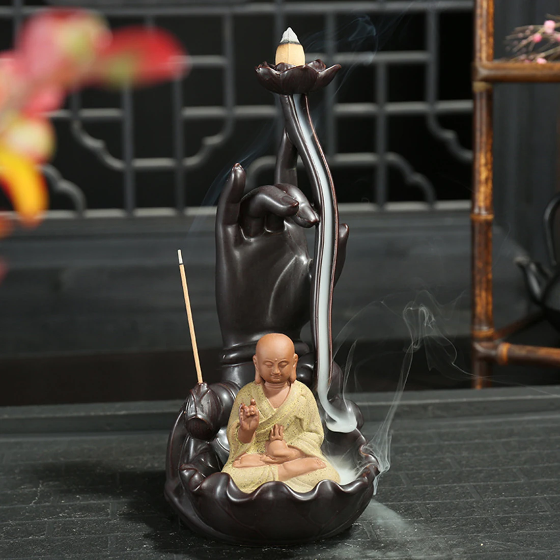Comprar Refluxo de cerâmica Queimador de Incenso Titular da Vara de Incenso Buda Tathagata 10 pcs Bouddha Cone Incenso Casa de Chá de Escritório Em Casa Decoração Baratas Online Preço