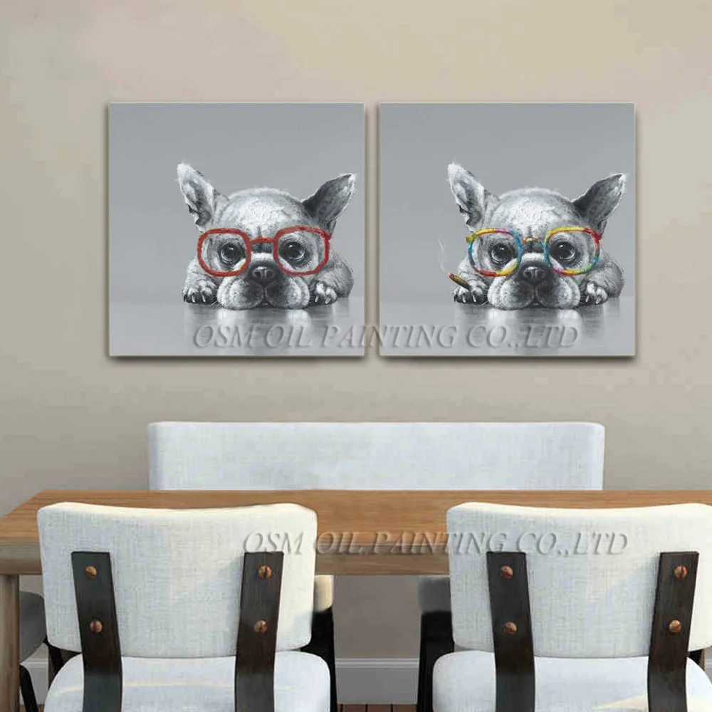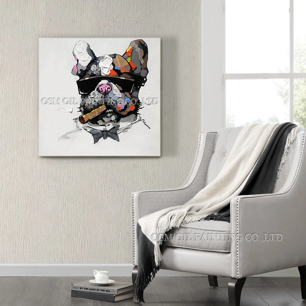 . Melhor Top Artista pintados à Mão de Alta Qualidade Tipos de Buldogue Francês Pintura A Óleo Animal Pintura A Óleo sobre Tela Imagem para arte da parede Barato Online Preço.