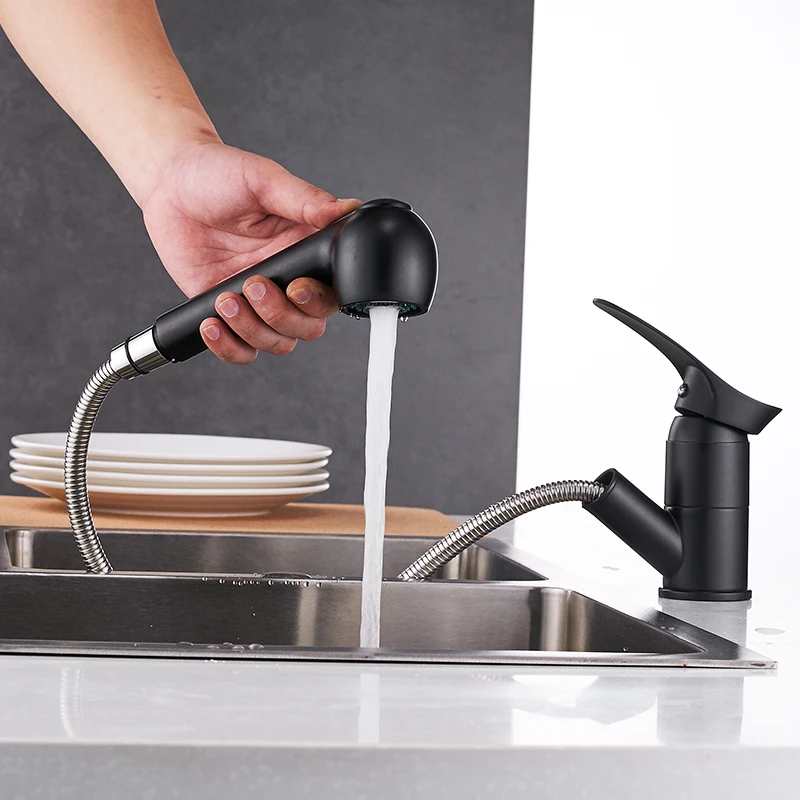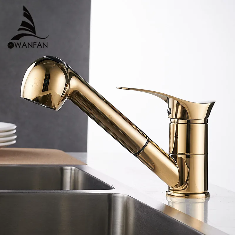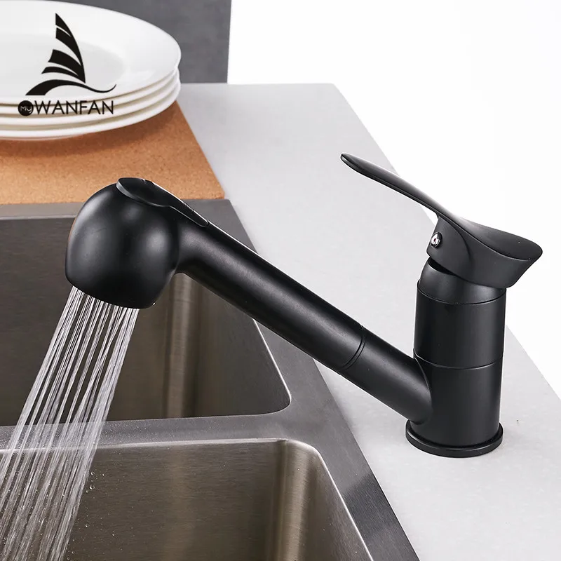 Comprar Torneiras de cozinha Giro de 360 Graus Pull Out Torneira Da Pia Da Cozinha de Água Saving preto Polido Guindaste Bacia Mixer Brass Tap WF 7005 Baratas Online Preço.