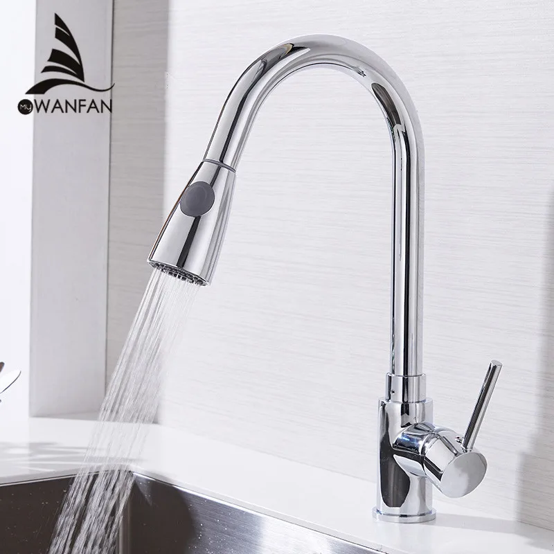 Comprar Torneiras de cozinha de Prata Único Punho Pull Out Torneira Da Cozinha Único Buraco Lidar Com Misturador de Água Da Torneira Torneira Misturadora Giratória de 360 Graus 408906 Baratas Online Preço.