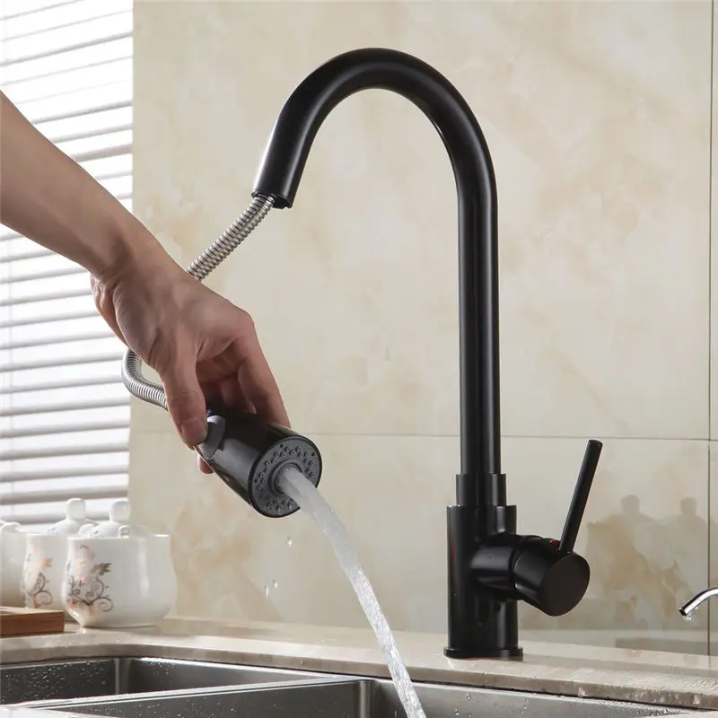Comprar Torneiras de cozinha Pull Out Kitchen Mixer Torneira de Bronze Preto 2 Way Função Água Mixer Deck Montado Único Punho Sink Guindaste 408906 Baratas Online Preço.