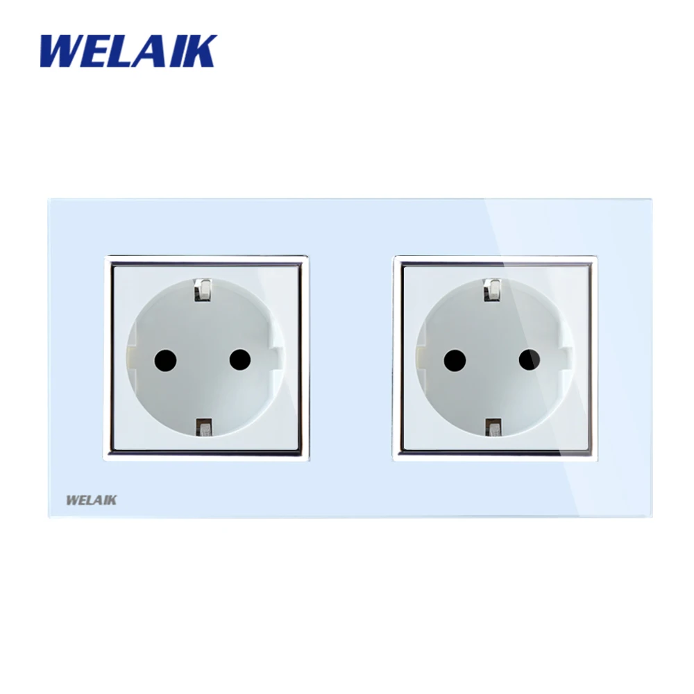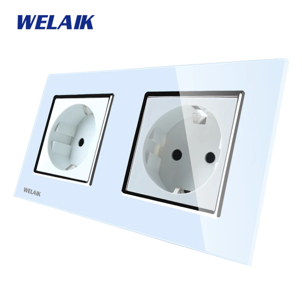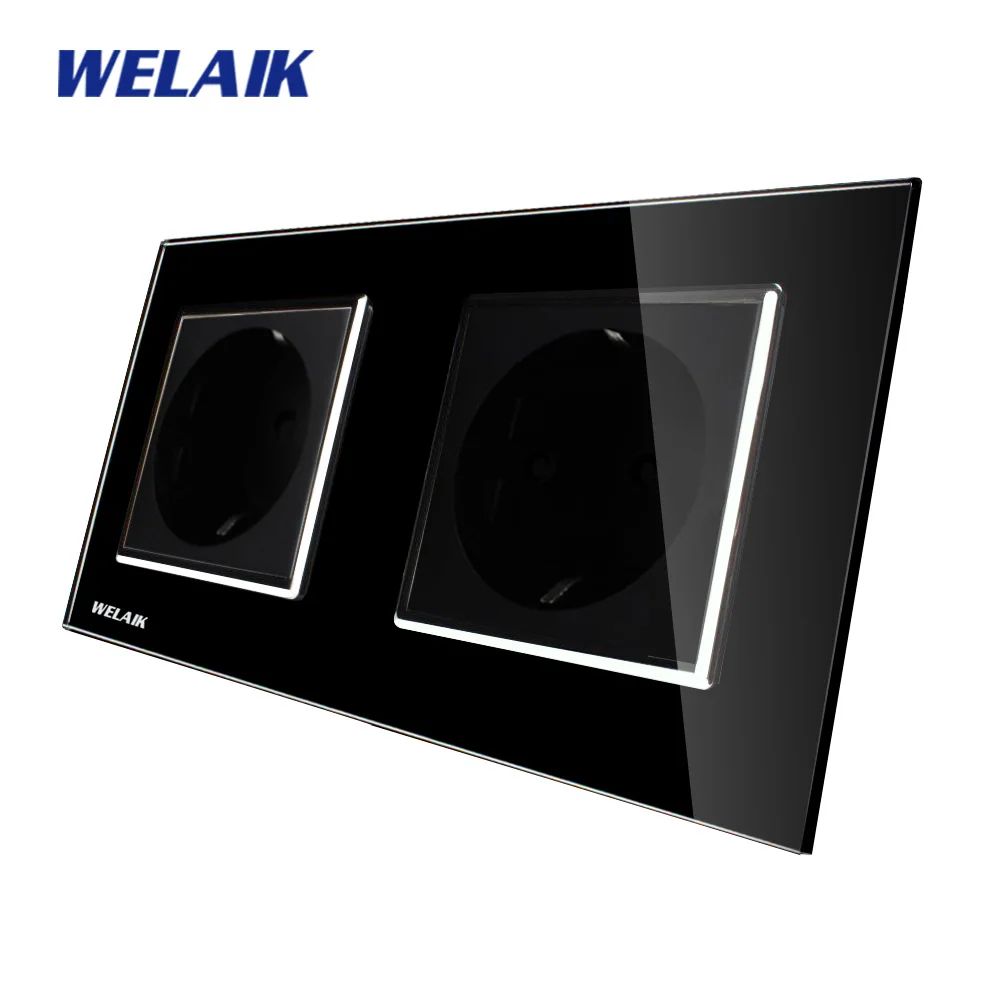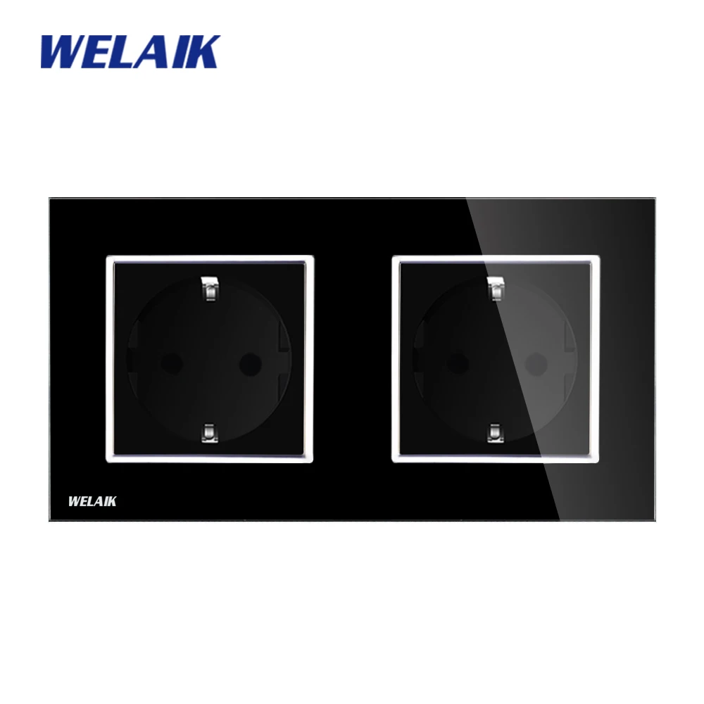 Comprar WELAIK Tomada de Parede Painel Tomada de Parede de Vidro Branco Preto Padrão Europeu Soquete De Energia AC110 ~ 250 V A28E8EW B Baratas Online Preço.
