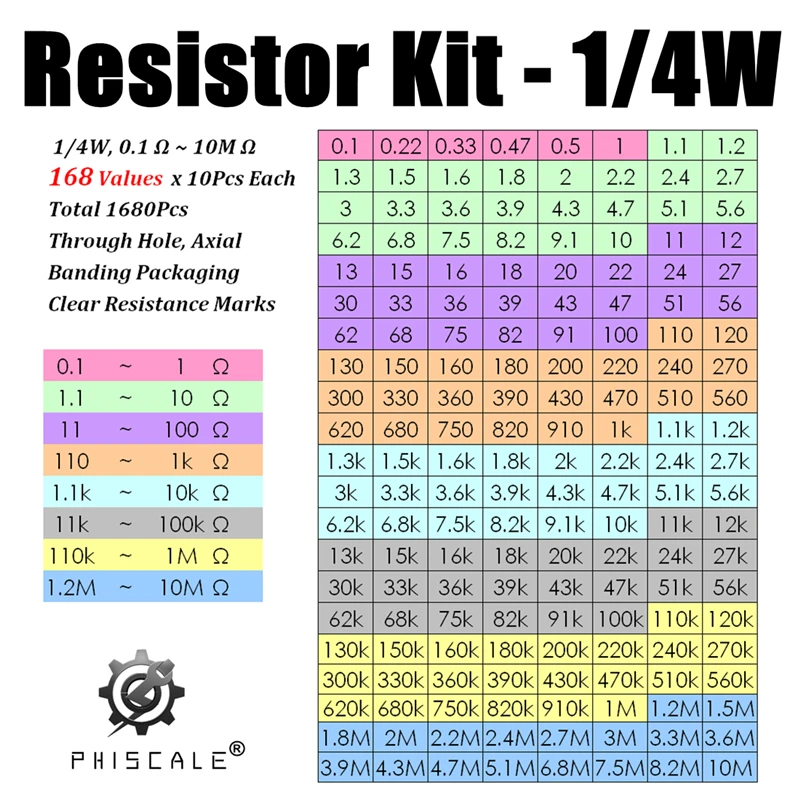 . Melhor 1 4 w pacote de resistores 168 valores x = 1680 pcs 0.1 10 10 pcs m 1% completo gama resistores variedade kit Barato Online Preço.