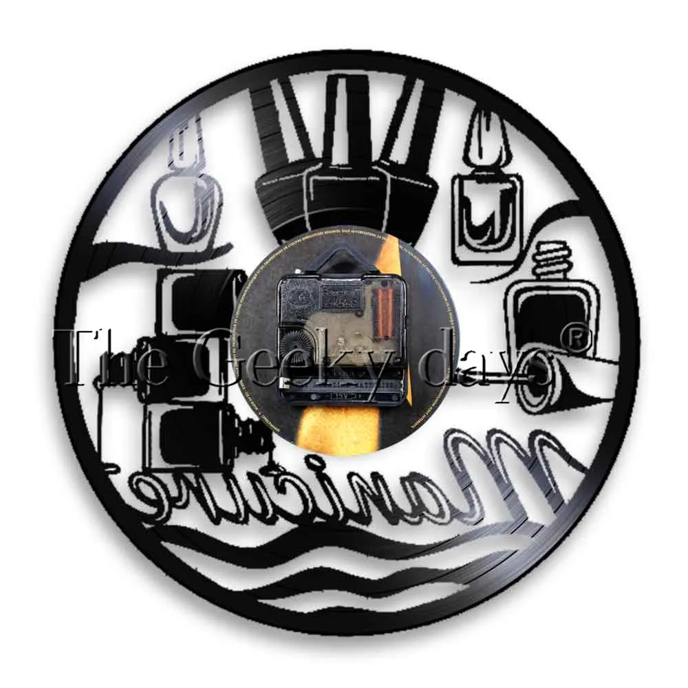 Comprar 1 Pedaço Manicure Design de Unhas Salão de Beleza Relógio de Parede Silhueta Beleza Disco de Vinil Do Vintage Relógio de Parede Relógio De Parede Decoração de Presente Namorada Baratas Online Preço