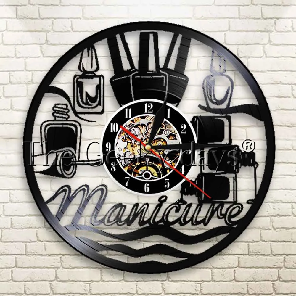 425568 quando mas. Melhor 1 Pedaço Manicure Design de Unhas Salão de Beleza Relógio de Parede Silhueta Beleza Disco de Vinil Do Vintage Relógio de Parede Relógio De Parede Decoração de Presente Namorada Barato Online Preço.