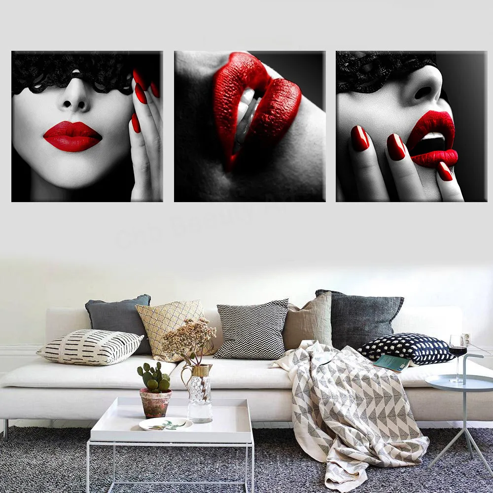 Comprar 3 peças Sexy Lips Prints Pintura Morden Arte Da Lona Decoração de Casa Retrato Da Parede Pictures Para Sala de estar Sem Moldura Preto Vermelho Baratas Online Preço.