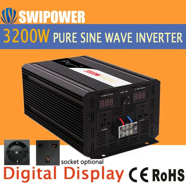 . Melhor 3200 w 3000 w onda senoidal pura energia solar inversor DC 48 24 12 v v v a AC 110 v 220 v display digital Barato Online Preço.