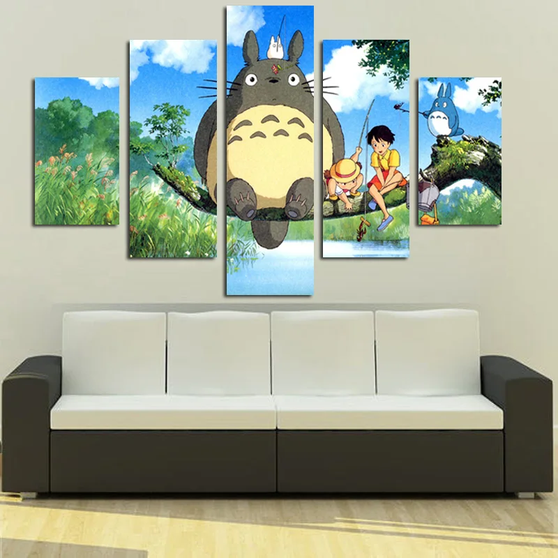 Comprar 5 Moderno Painel Modular de Hayao Miyazaki Totoro Art HD Impressão Imagem do Cartaz Da Pintura de parede Para O Quarto Dos Miúdos Dos Desenhos Animados de Parede Cuadros decoração Baratas Online Preço.