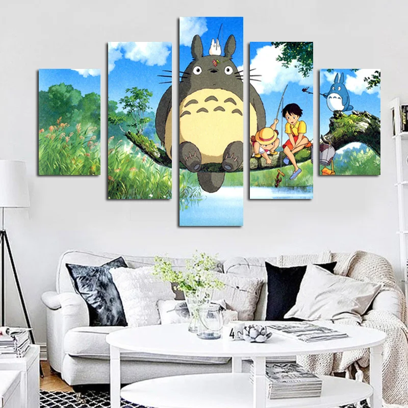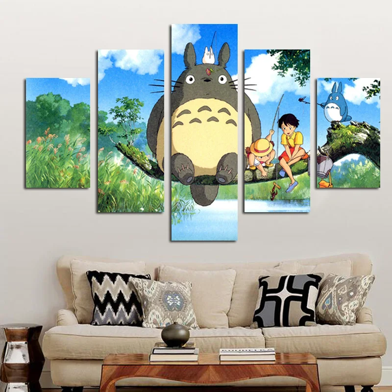 Comprar 5 Moderno Painel Modular de Hayao Miyazaki Totoro Art HD Impressão Imagem do Cartaz Da Pintura de parede Para O Quarto Dos Miúdos Dos Desenhos Animados de Parede Cuadros decoração Baratas Online Preço