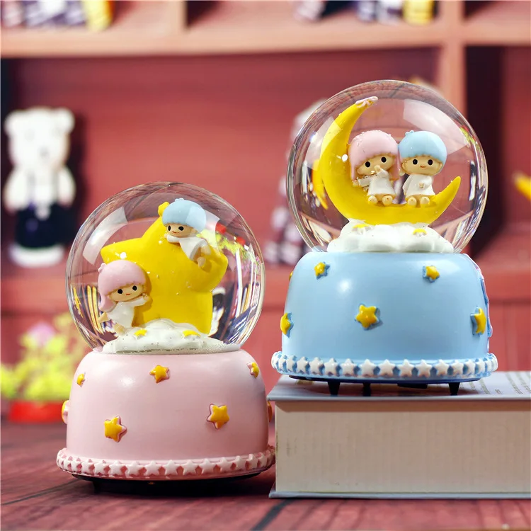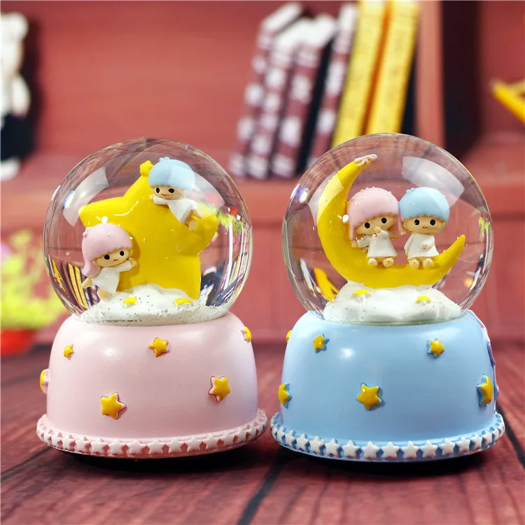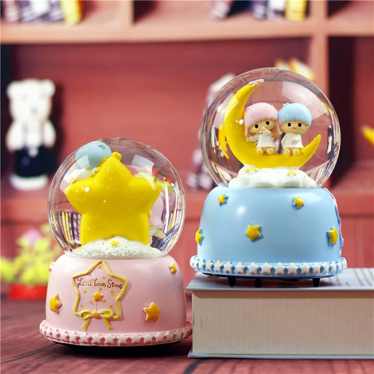 Comprar Anjo Caixa De música Bola De Água Giratório Com Estrela Lua Forma Floco De Neve Pouco Anjo de Neve Bola De Cristal Luminosa Presente de Natal da Criança Baratas Online Preço