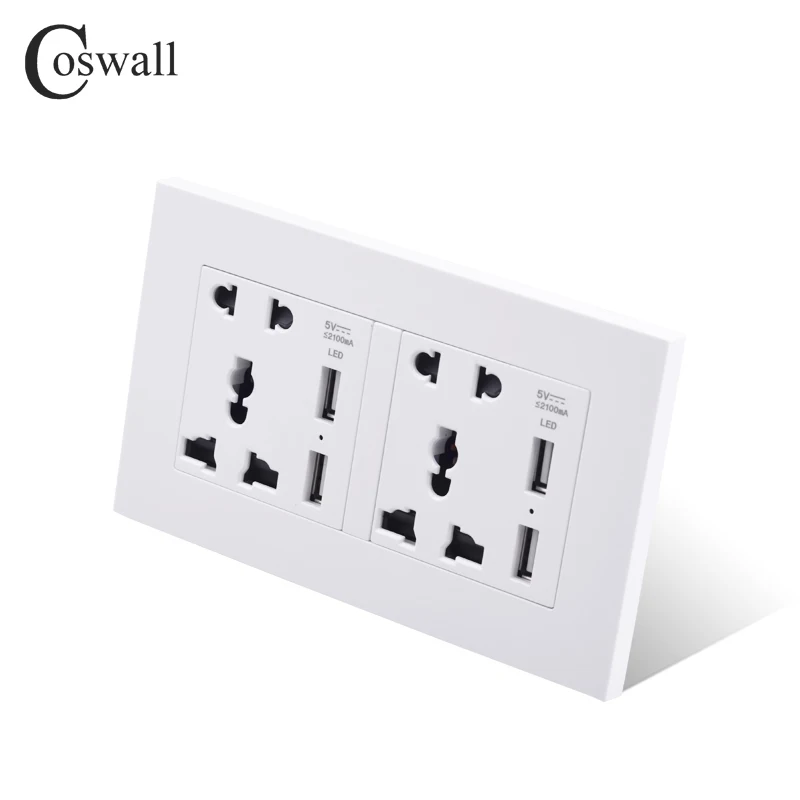 Comprar COSWALL 5 Buraco Tomada De Energia Com 4 Tomada De Parede Dupla Universal USB Inteligente Indução Porta Carregador para Celular LED Azul indicador Baratas Online Preço.