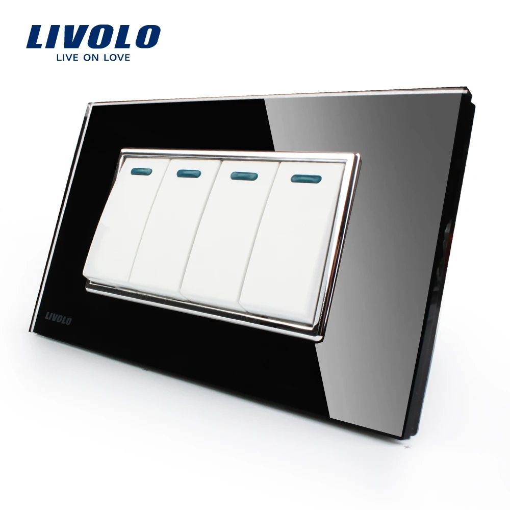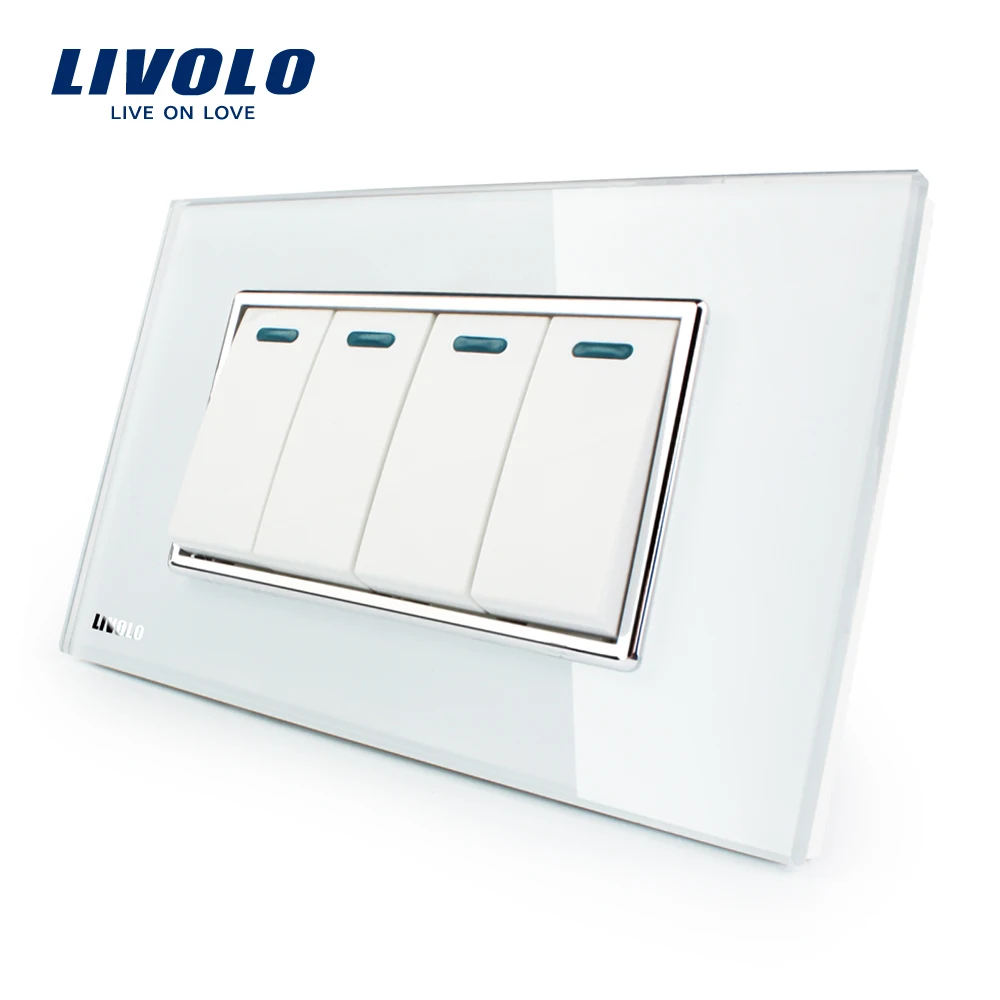 Comprar Fabricante Livolo Luxo Painel de Vidro Cristal Branco, 4 Gang, 2 Way Botão Interruptor de Parede Para Casa, VL C3K4S 81 Baratas Online Preço