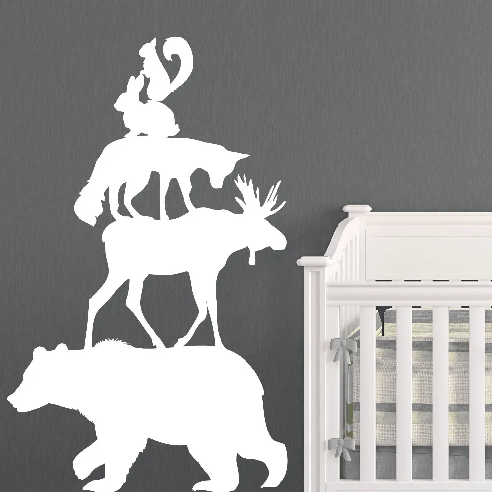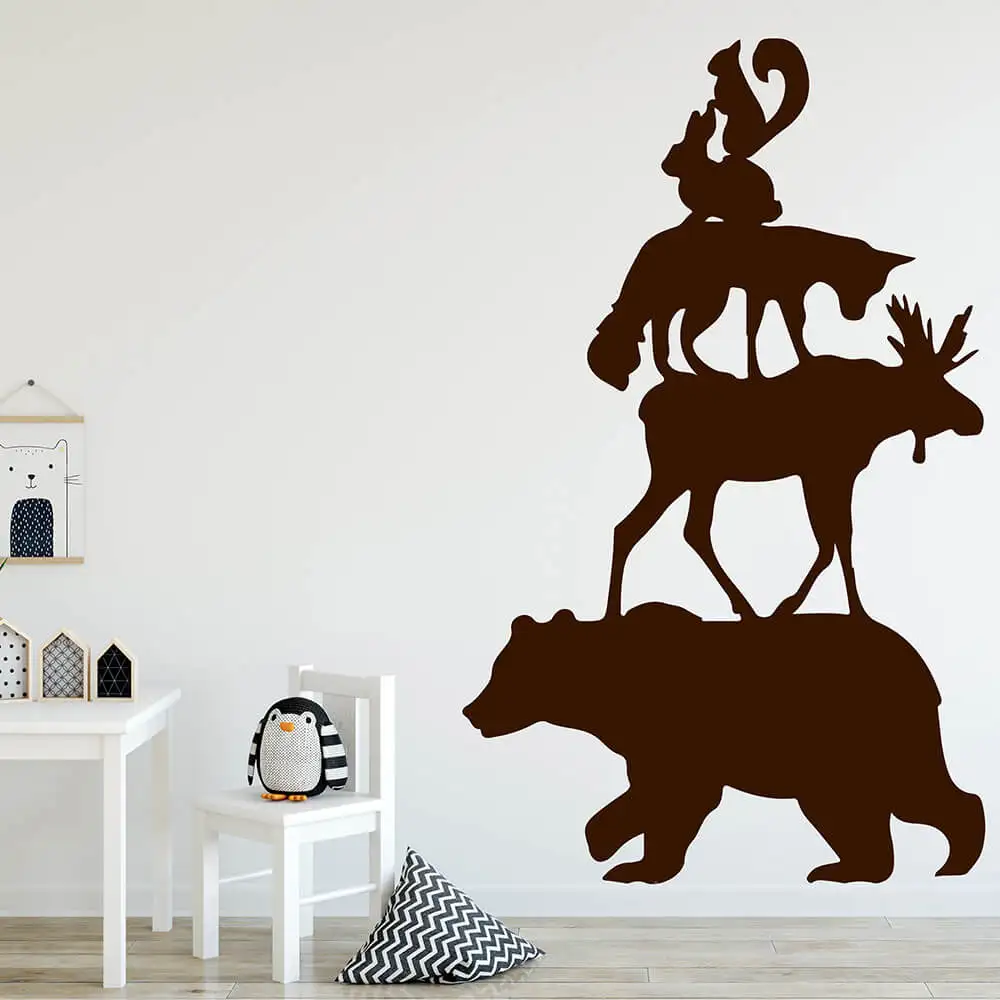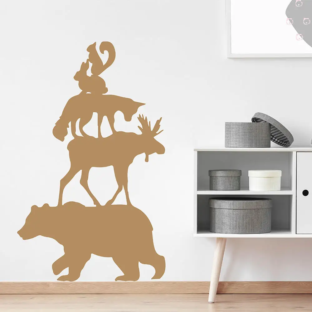 Comprar Grandes Animais Da Floresta Empilhadas Empilhados Floresta Urso Alces Coelho da Raposa Animais Adesivo de Parede Decoração Da Parede para o Berçário 834N Baratas Online Preço