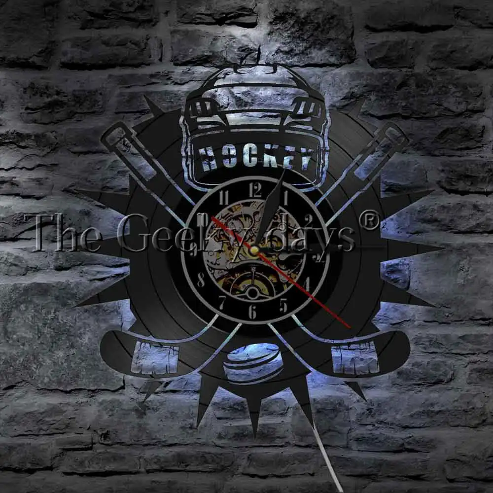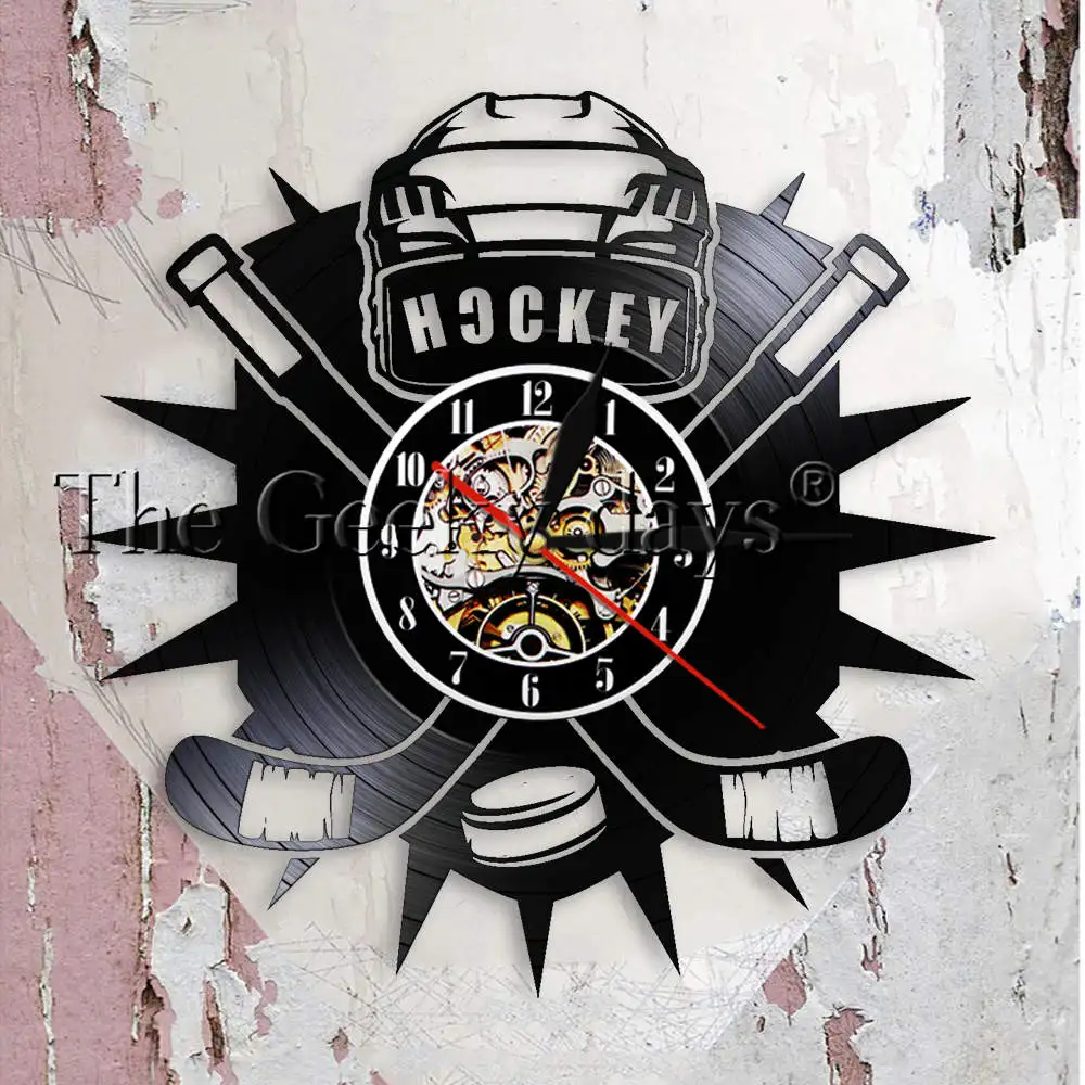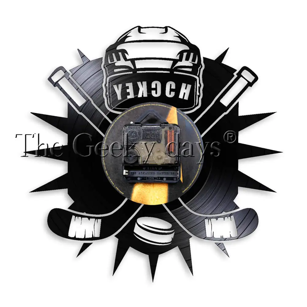Comprar Hockey Man Cave Decor Relógio de Parede Relógio Logotipo Da Equipe Do Clube de Hóquei Hóquei Varas e Registro de Vinil Relógio de Parede Hockey Puck fãs Presente Baratas Online Preço
