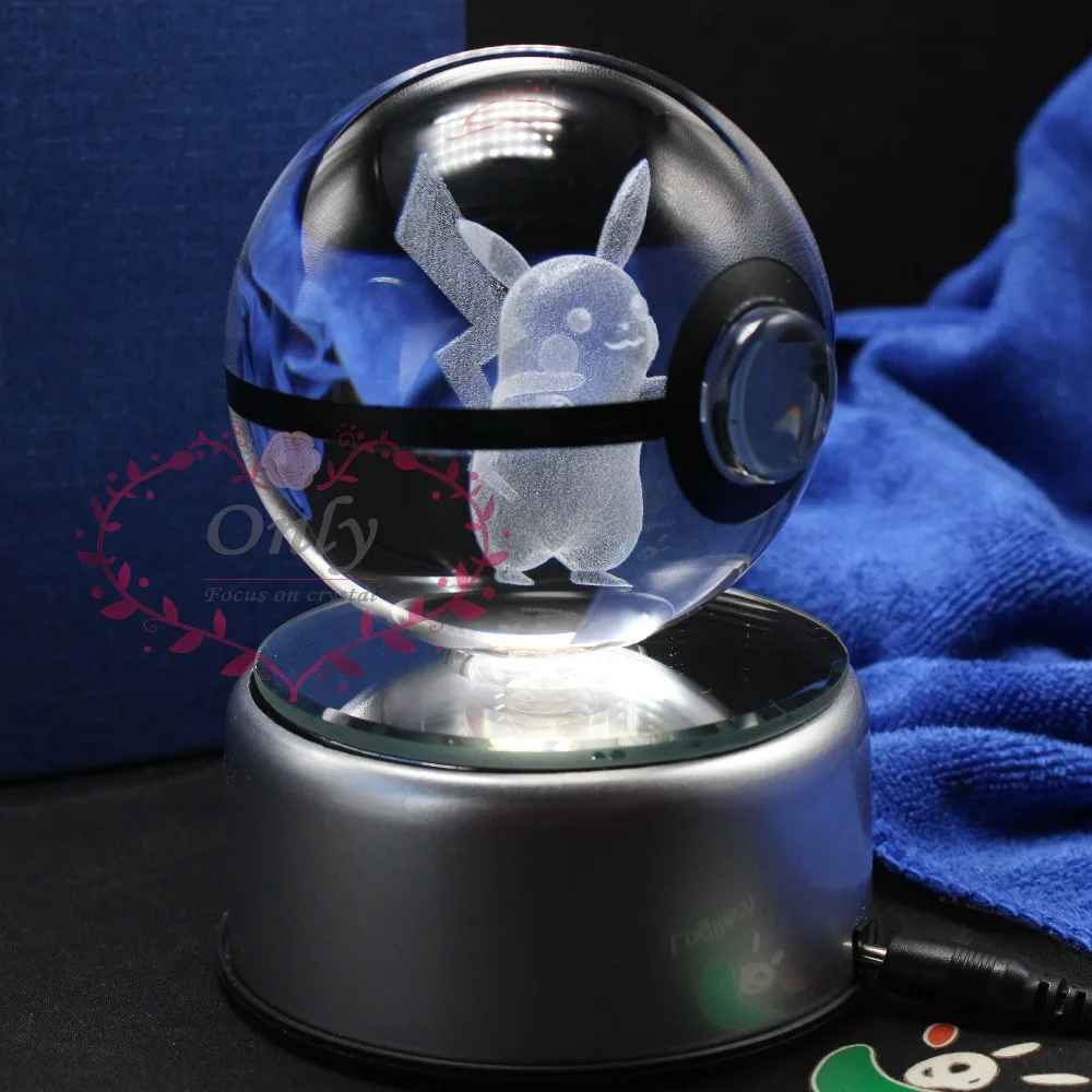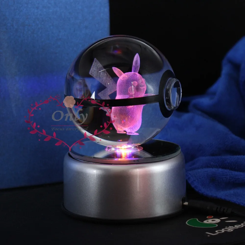 Comprar Nova Moda Go Estalo Bonito Pikachu Pokemon 3D de Cristal Bola De Vidro Presentes figiure Baratas Online Preço.