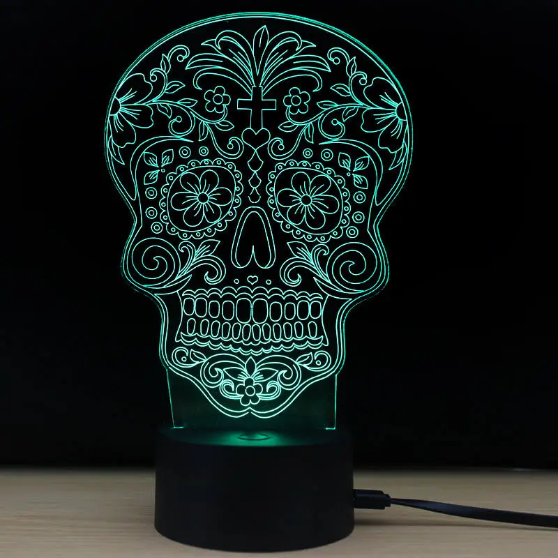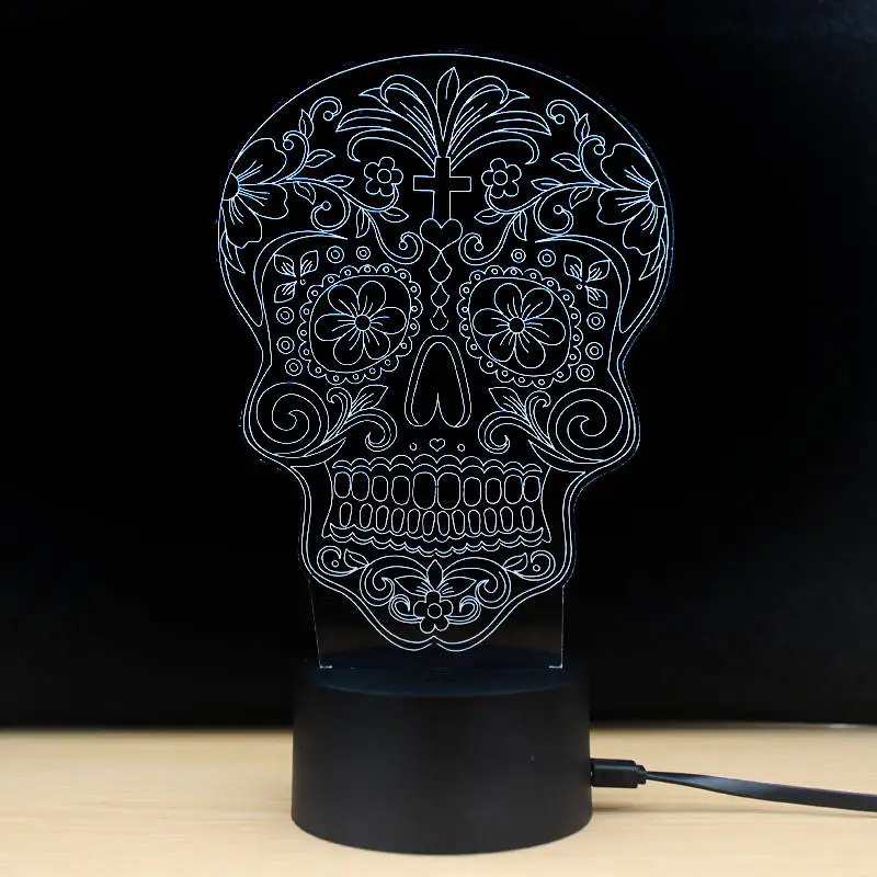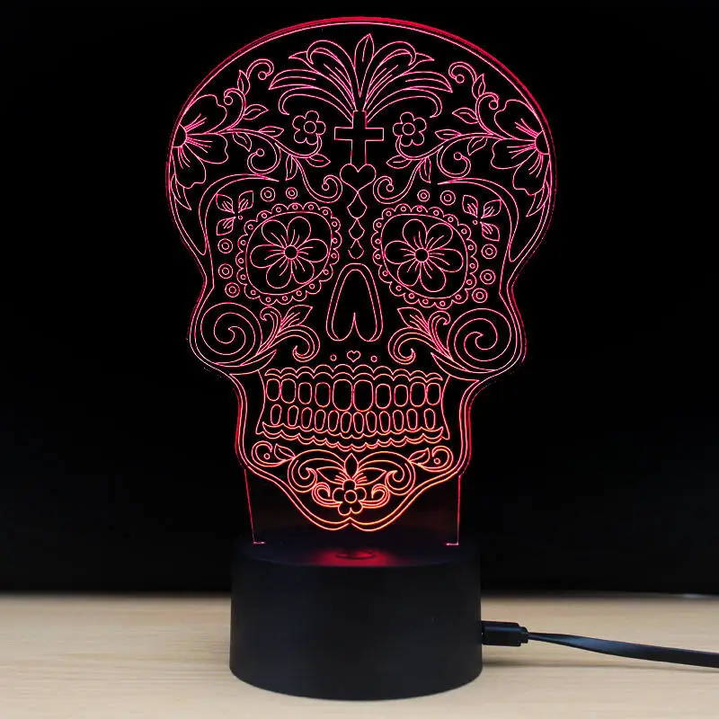 Comprar Novidade Crânio Cabeça Da Lâmpada de Luz LED Acrílico Sinal de Néon Lâmpada de Mesa Decoração Da Casa Do Bebê Crianças Presentes Sinais Decorativos Placas de Acrílico Baratas Online Preço