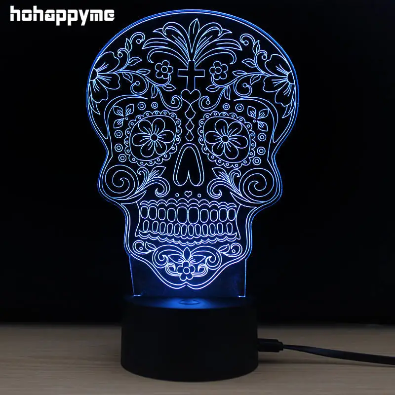 Comprar Novidade Crânio Cabeça Da Lâmpada de Luz LED Acrílico Sinal de Néon Lâmpada de Mesa Decoração Da Casa Do Bebê Crianças Presentes Sinais Decorativos Placas de Acrílico Baratas Online Preço.